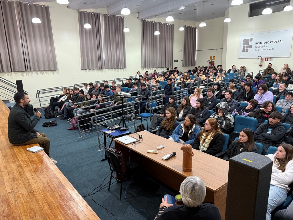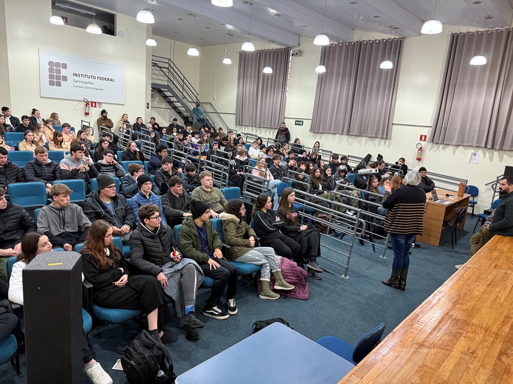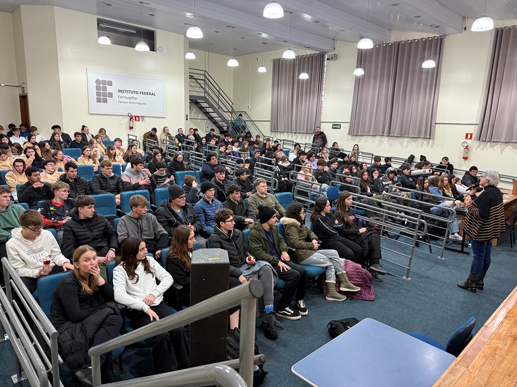 O Núcleo de Gênero e Diversidade Sexual do IFFar - Campus Santo Augusto (NUGEDIS) promoveu nesta quinta-feira, 26 de junho, um Cine Debate alusivo ao Dia do Orgulho LGBTQIAPN+, para os estudantes dos cursos técnicos integrados ao ensino médio, com a exibição do filme Alice Junior (2019), do diretor Gil Baroni.