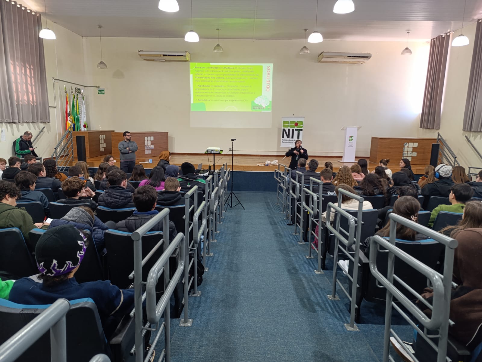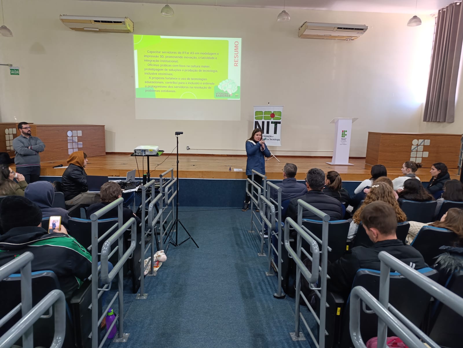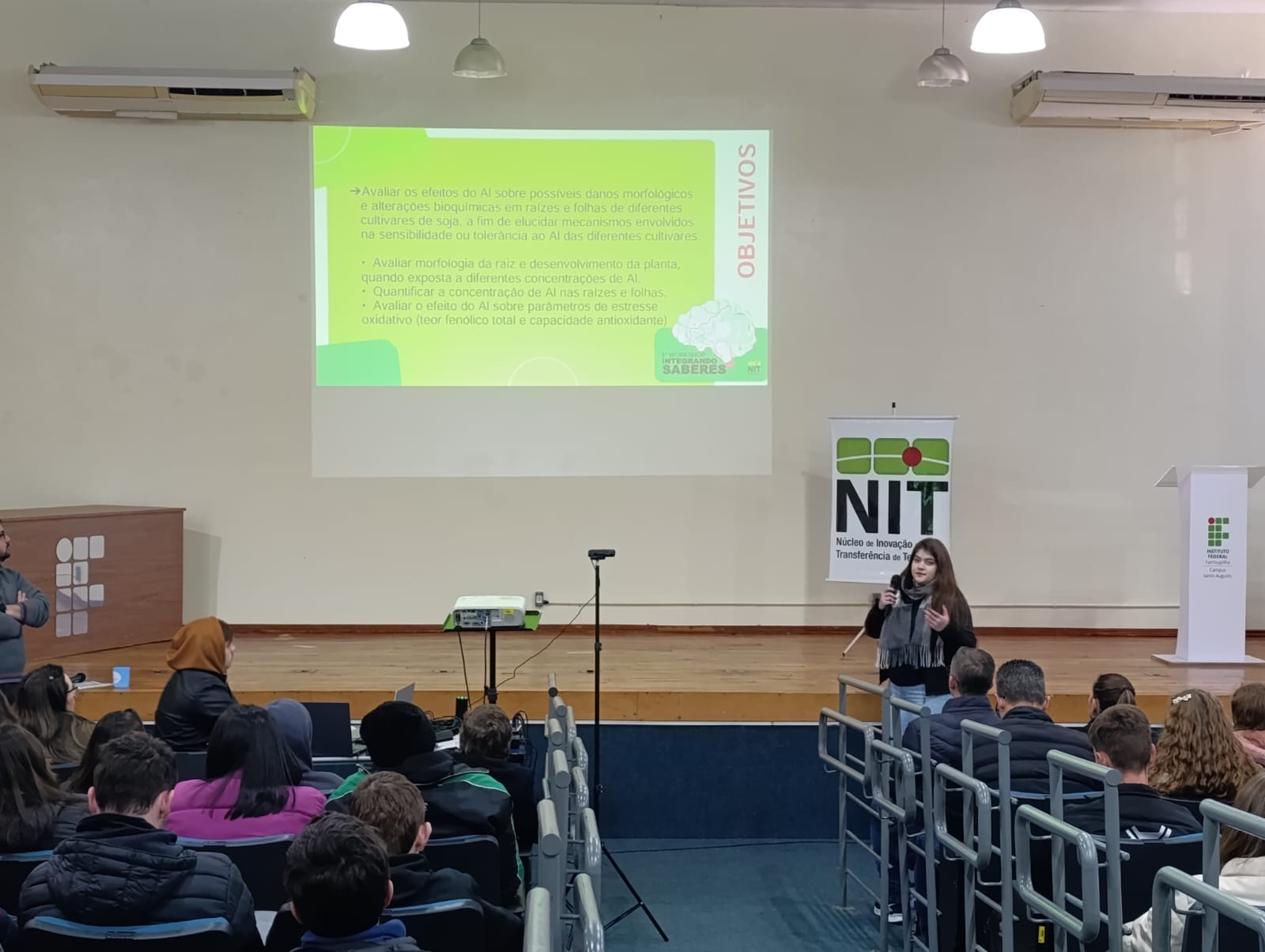 O Núcleo de Inovação e Tecnologia (NIT) do IFFar – Campus Santo Augusto, em parceria com a equipe da Incubadora Tecnológica, realizou nesta terça-feira, dia 1º de julho, às 13h30, no auditório da instituição, a 5ª edição do Workshop “Integrando Saberes”, tendo como objetivo apresentar, de forma dinâmica e objetiva, à comunidade acadêmica e local, os projetos, núcleos e ações em desenvolvimento no campus.