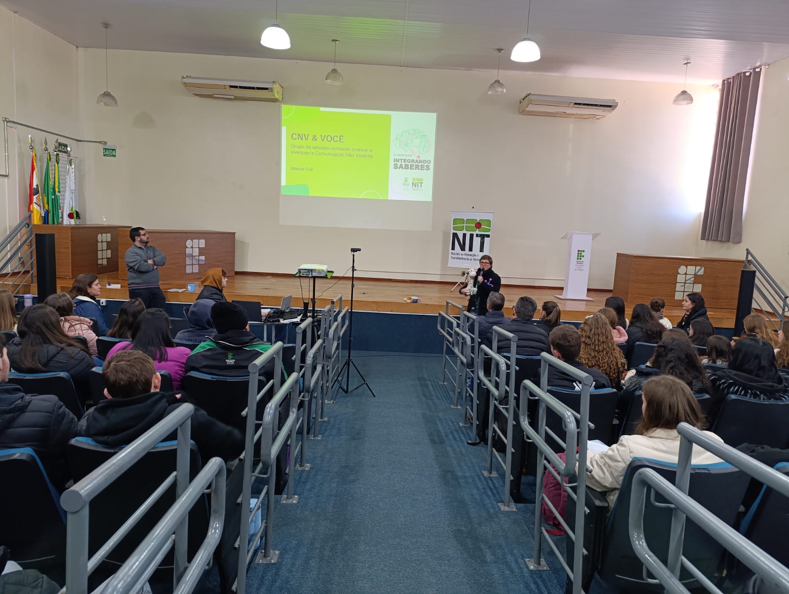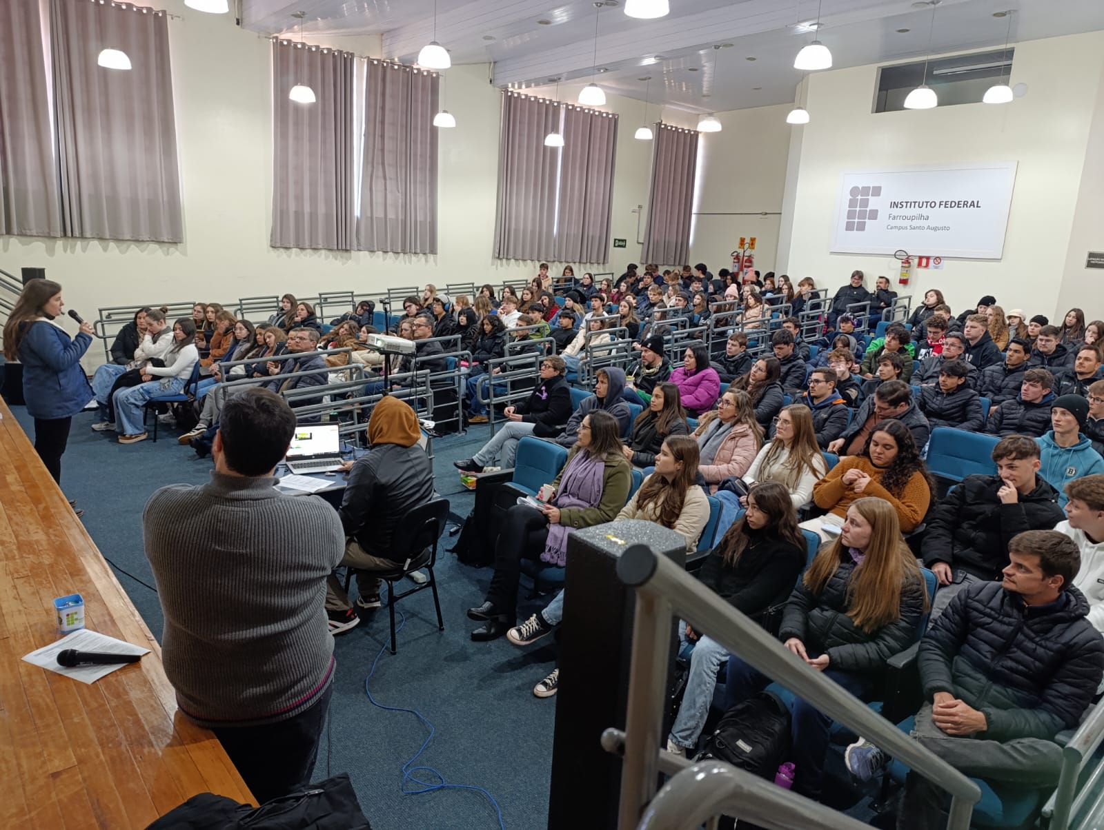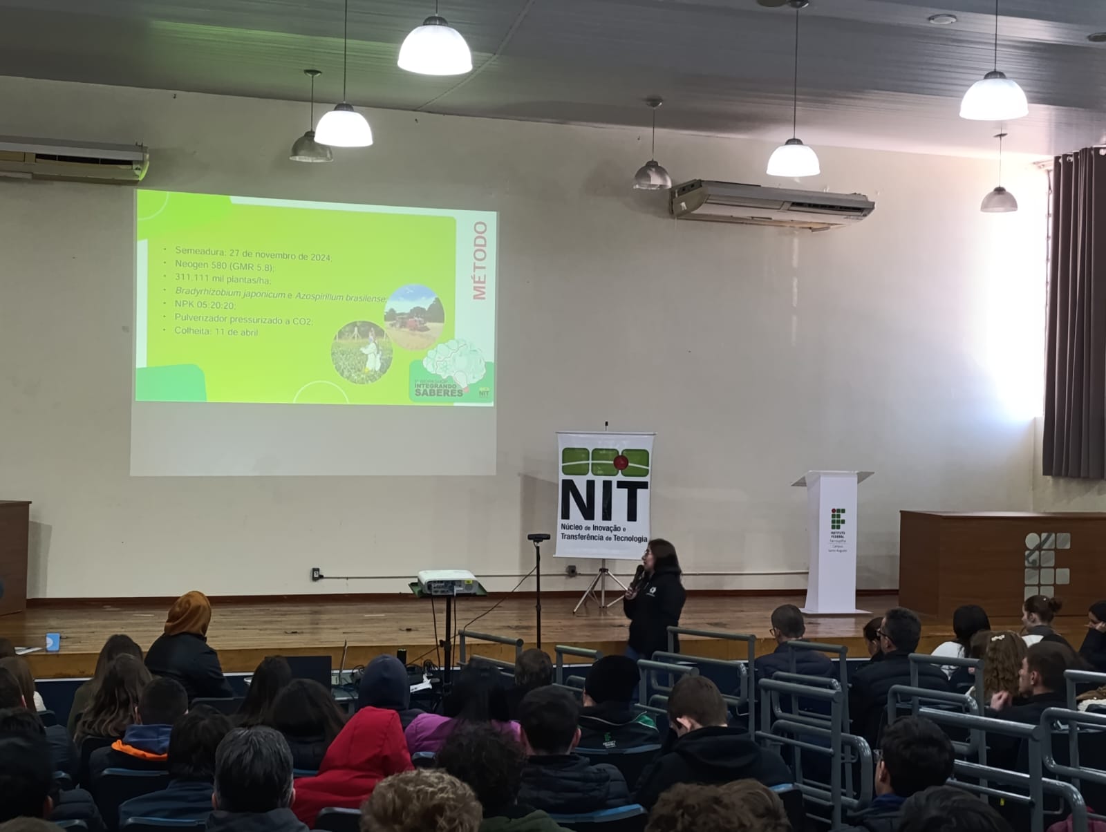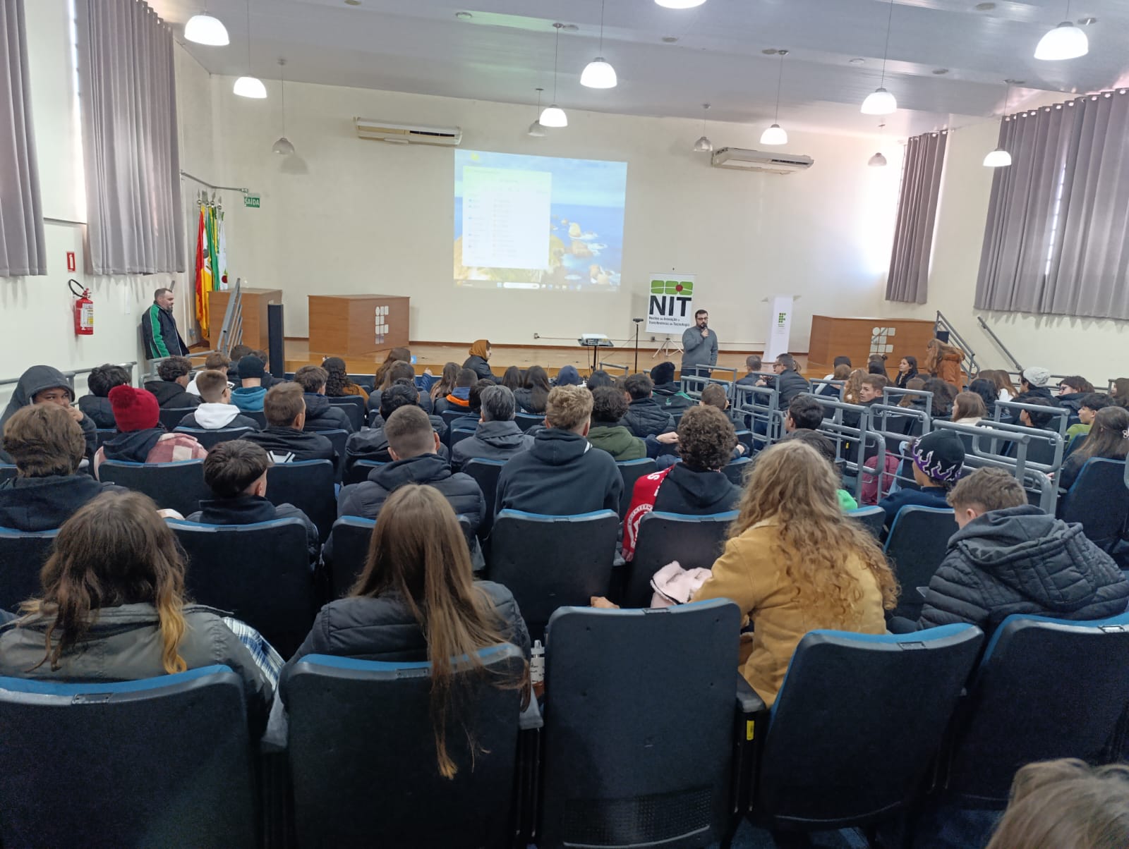O Núcleo de Inovação e Tecnologia (NIT) do IFFar – Campus Santo Augusto, em parceria com a equipe da Incubadora Tecnológica, realizou nesta terça-feira, dia 1º de julho, às 13h30, no auditório da instituição, a 5ª edição do Workshop “Integrando Saberes”, tendo como objetivo apresentar, de forma dinâmica e objetiva, à comunidade acadêmica e local, os projetos, núcleos e ações em desenvolvimento no campus.