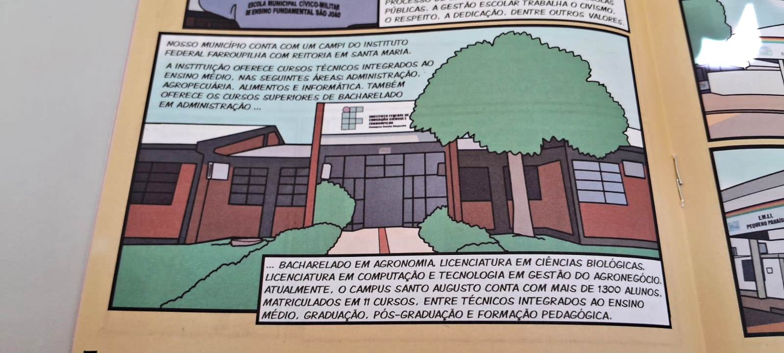 O IFFar – Campus Santo Augusto está entre as instituições de ensino do município citadas na publicação, com destaque para o Ensino Técnico e Superior. Exemplares do gibi se encontram e disponíveis para leitura na Biblioteca do Mario Quintana.
