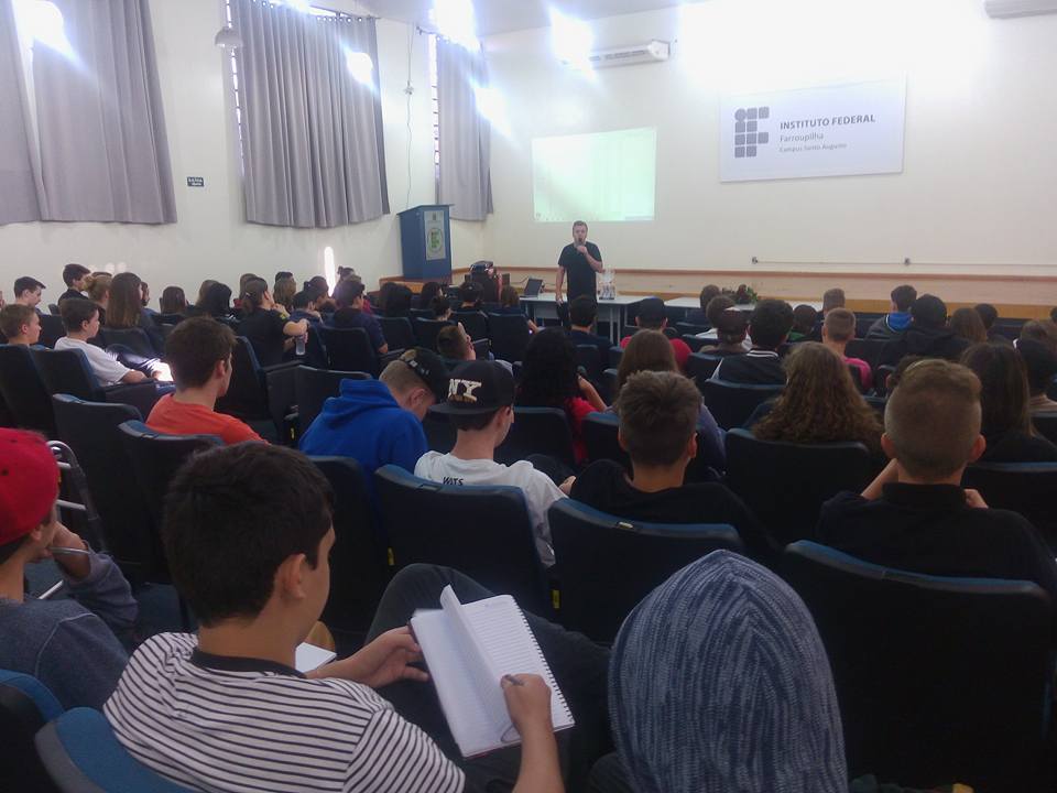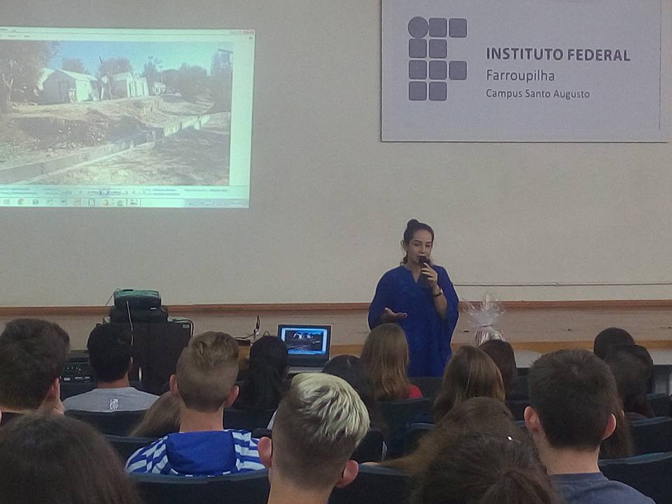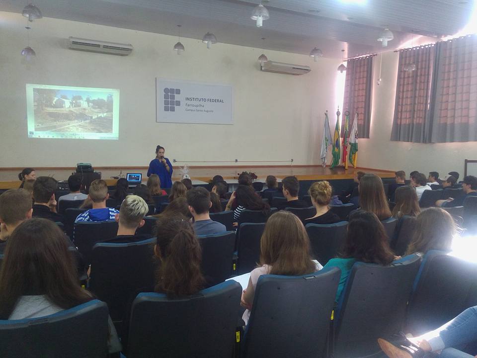 Na manhã do último sábado, dia 25 de março, o IFFar – Campus Santo Augusto recebeu a missionária da JOCUM (Jovens com uma missão), Lucineia Santos, que veio até a instituição relatar para alunos e servidores sua experiência no início deste ano com os refugiados da Guerra da Síria, na Grécia e na Turquia. A atividade foi desenvolvida com o apoio da Direção de Ensino, pelos professores Maira Pizolotto e Dirceu Dirk, responsáveis pelas disciplinas de Gestão, Economia e Projetos e História.