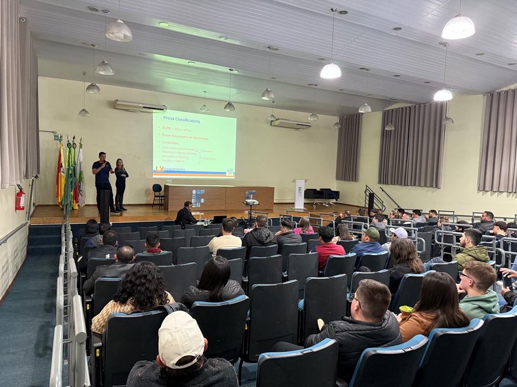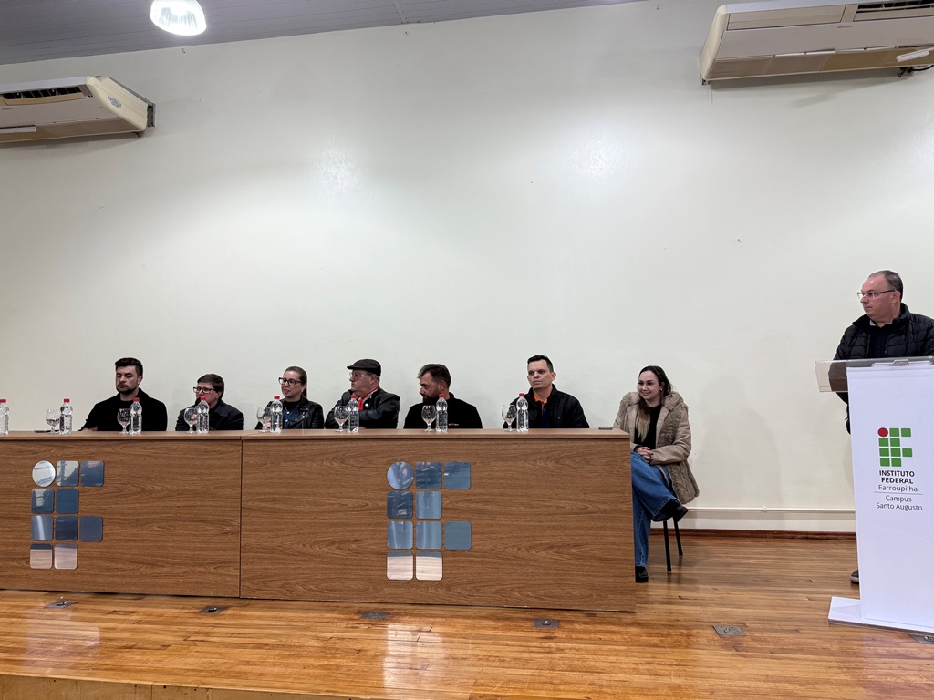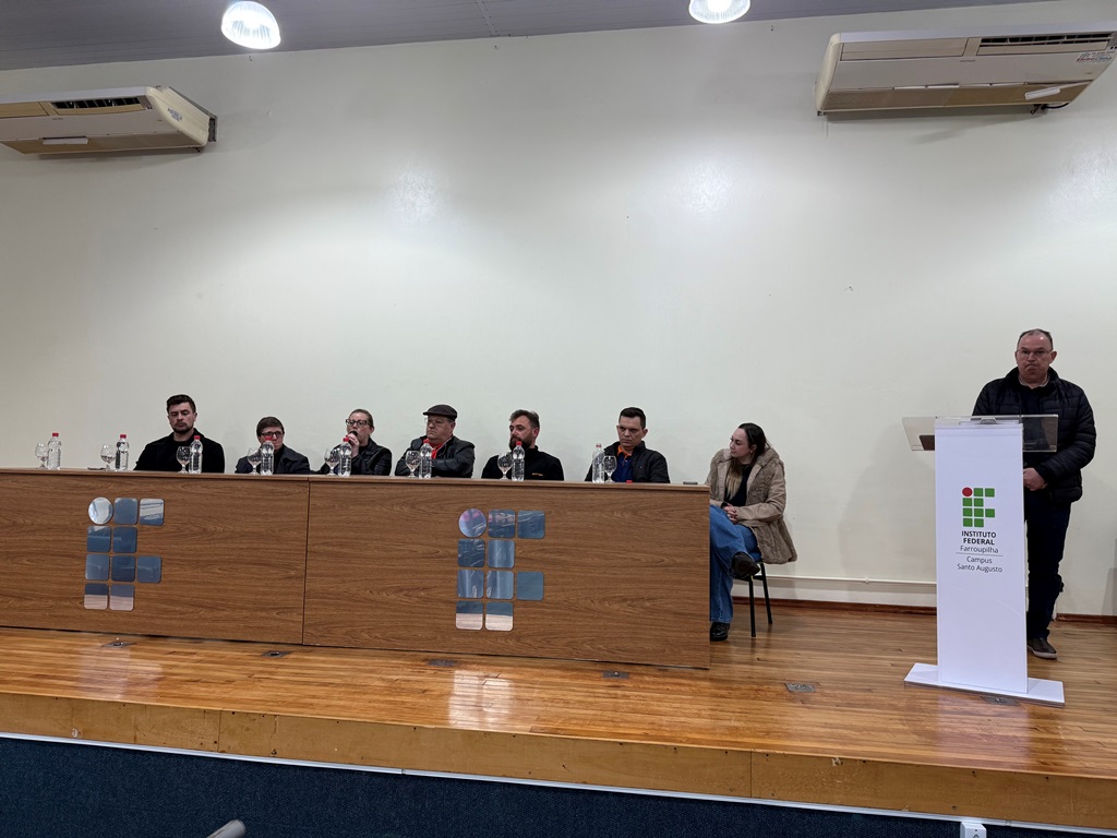 O auditório do IFFar – Campus Santo Augusto foi sede na noite de ontem, 11 de agosto de da aula inaugural do Curso de Formação de Desenhista Mecânico, realizado em parceria com a Prefeitura Municipal, Câmara de Vereadores, ACISA, Botier, LH Equipamentos, SKA e IFFar.