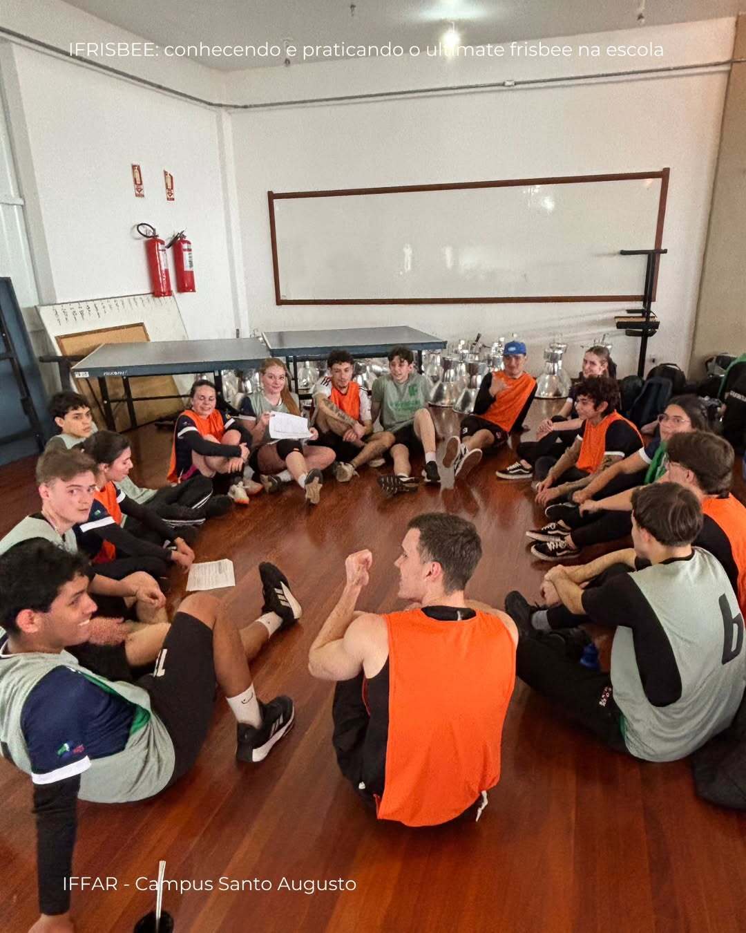 Na ocasião, os visitantes puderam vivenciar o ultimate frisbee em um formato diferente, com a organização de um torneio com 6 equipes mistas, realizando uma integração dos estudantes do IFRS com os alunos do 3º ano do curso técnico em Administração do IFFar – Campus Santo Augusto. A programação incluiu ainda uma apresentação da Banda IF Musical e visita à estrutura do curso de Informática e ao LabMaker.