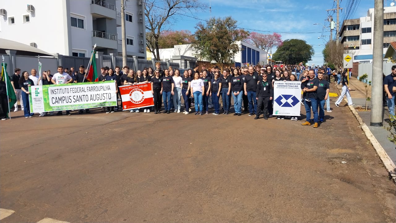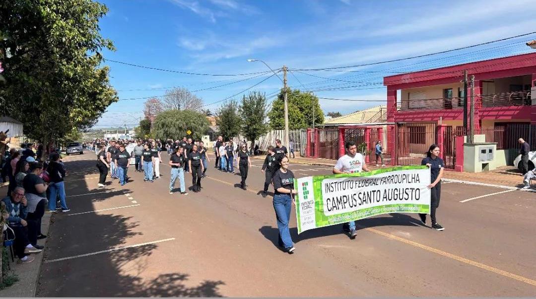 O IFFar - Campus Santo Augusto participou na manhã de domingo, 31 de agosto, do Desfile Cívico, alusivo à semana da Pátria, organizado pela equipe da Secretaria de Cultura, Turismo e Esporte (SECUTE) e pela Secretaria Municipal de Educação (SME), juntamente com escolas e entidades do município de Santo Augusto.