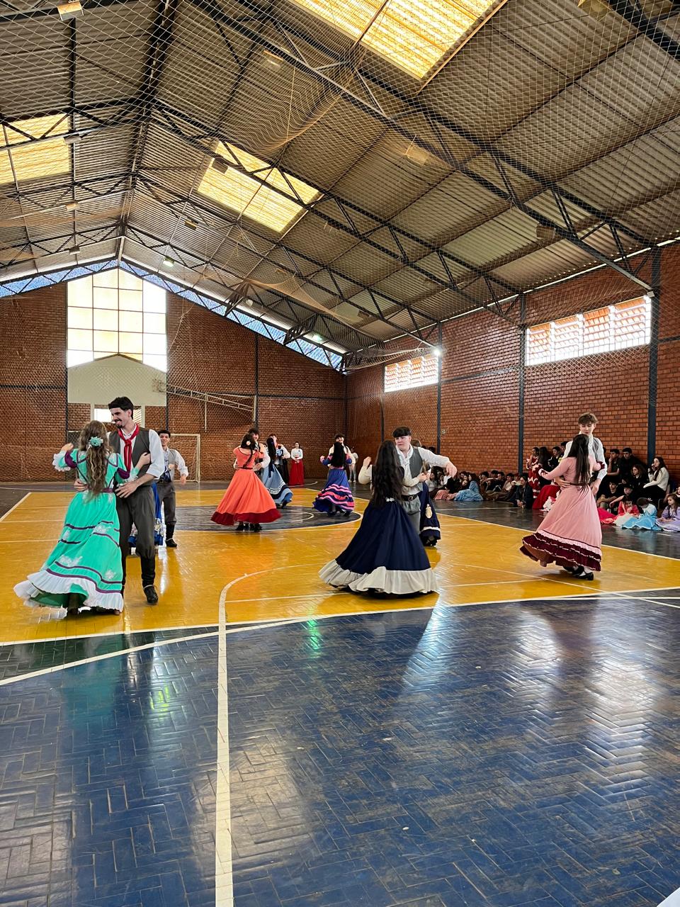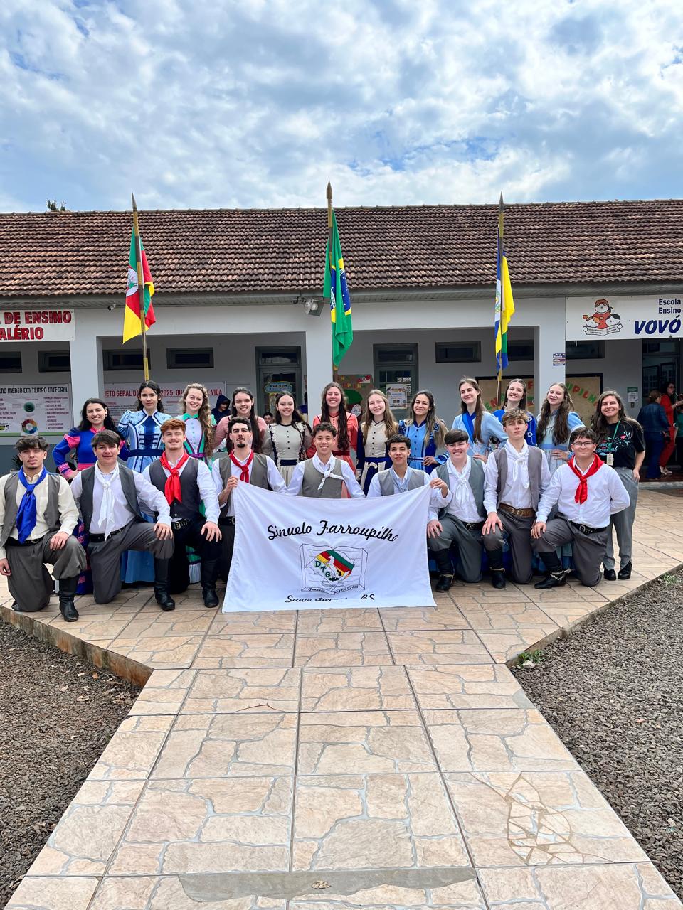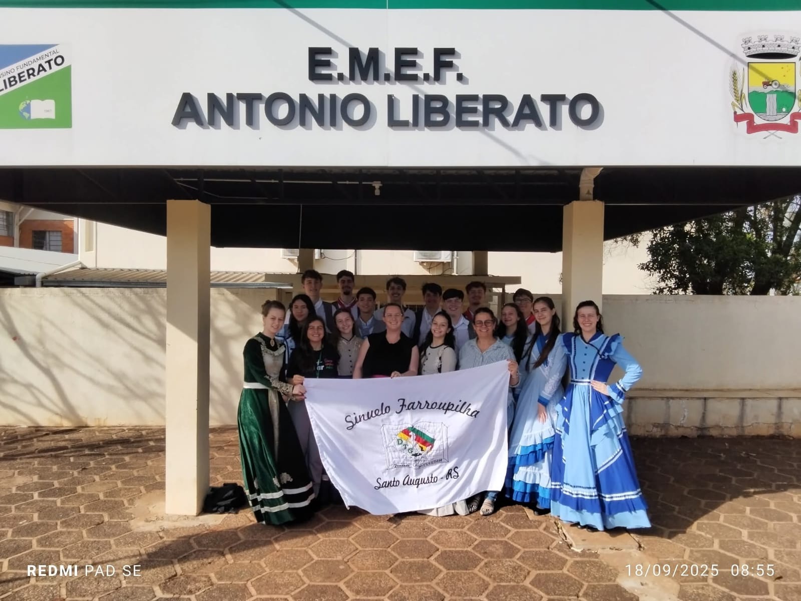 A Invernada Artística do DTG Sinuelo Farroupilha, por meio do projeto de extensão “Tradição em Movimento”, realizou apresentações no IFFar – Campus Santo Augusto e em escolas de Santo Augusto e São Valério do Sul durante a Semana Farroupilha.