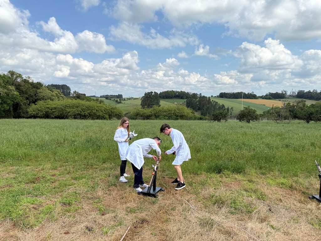 Foi realizada na tarde de segunda-feira, 29 de setembro, no IFFar – Campus Santo Augusto, a seletiva local da Mostra de Foguetes 2025, competição onde alunos lançam “foguetes” construídos com materiais recicláveis e impulsionados por reações químicas. Os lançamentos foram realizados sob a coordenação do professor Carlos Wyrepkowski, em área aberta, e puderam ser acompanhados por estudantes e servidores da instituição.