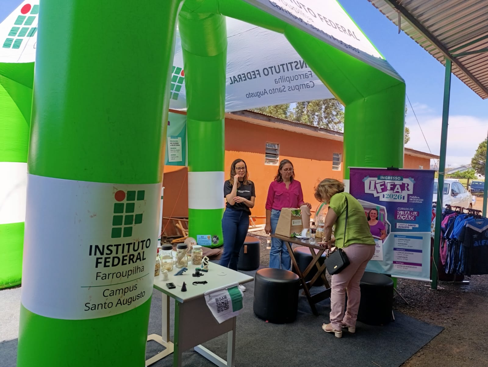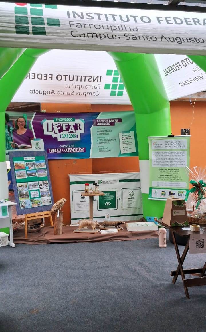 O IFFar – Campus Santo Augusto esteve participando de 03 a 05 de outubro, no parque de exposições do Sindicato Rural em Santo Augusto, da EXPOFESA 2025, através de um estande para divulgação dos cursos oferecidos, onde estudantes e servidores puderam mostrar para a comunidade um pouco do que é realizado pela instituição.