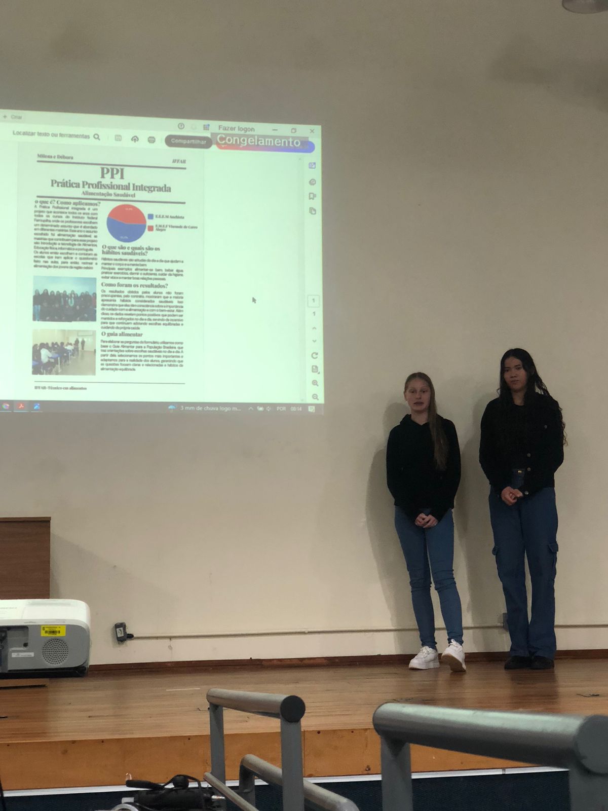 Na sexta-feira, dia 17, aconteceu o encerramento da semana, com a socialização dos trabalhos de PPIs do 1º ano, desenvolvidos com estudantes de escolas da região. O projeto de Prática Profissional Integrada – PPI, denominado “Guia Alimentar: como ter uma alimentação saudável”, teve como objetivo, aplicar um questionário online para verificar se esses alunos possuíam hábitos saudáveis com relação a ingestão de alimentos e a prática regular de exercícios físicos. Os resultados obtidos foram apresentados em forma de notícias.