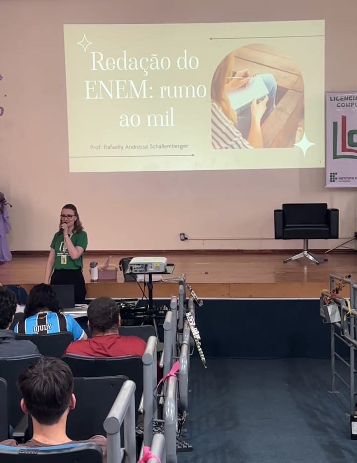 Na tarde de quinta-feira, dia 23, foram realizadas as palestras sobre, “Como o Github usa Github para construir o Github, como o Engenheiro de Software, Guilherme Adrighetto Teixeira, seguida pela palestra com a professora Ma. Rafaelly Andressa Schallemberger, sobre Redação do Enem: rumo ao mil.