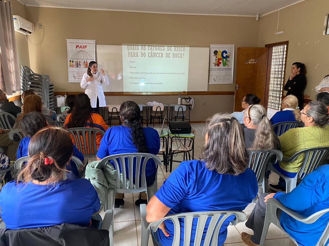 Na tarde de terça-feira, 16 de dezembro, foi realizada uma ação do projeto, no Centro de Referência em Assistência Social – CRAS Carmen Maria Andrighetto, onde as cirurgiãs-dentistas, Débora Cristina Speroni, Cristiane Maria Speroni e Elis Regina Agnes Weiller, realizaram exames de diagnósticos com integrantes do grupo de idosos.