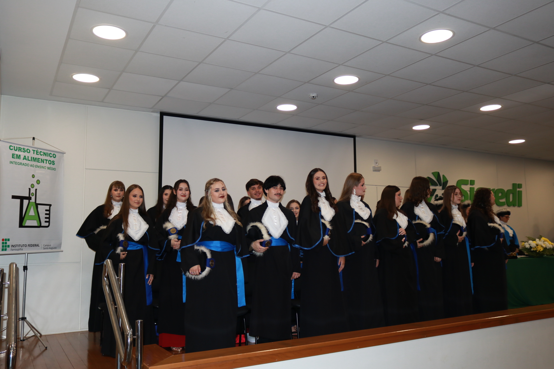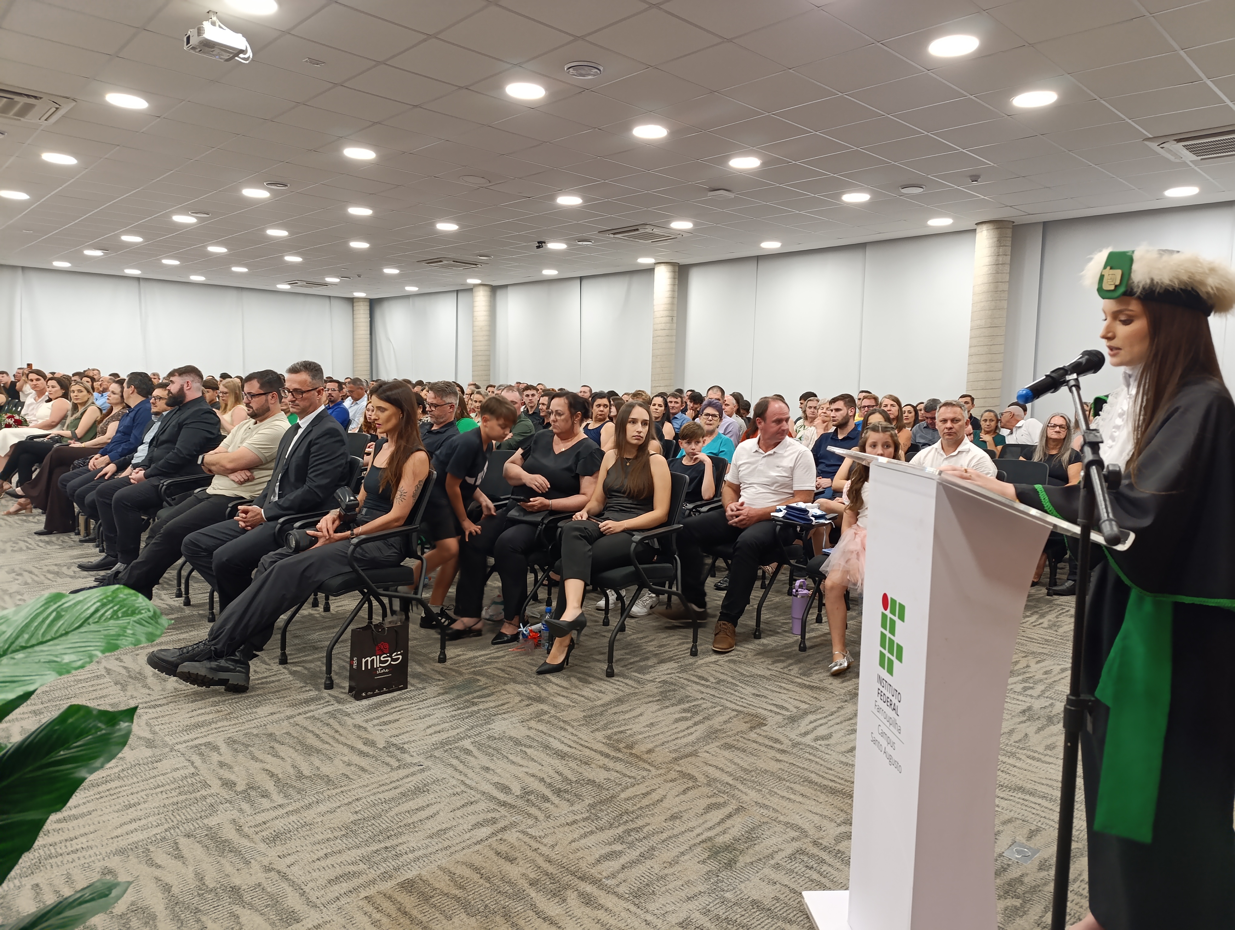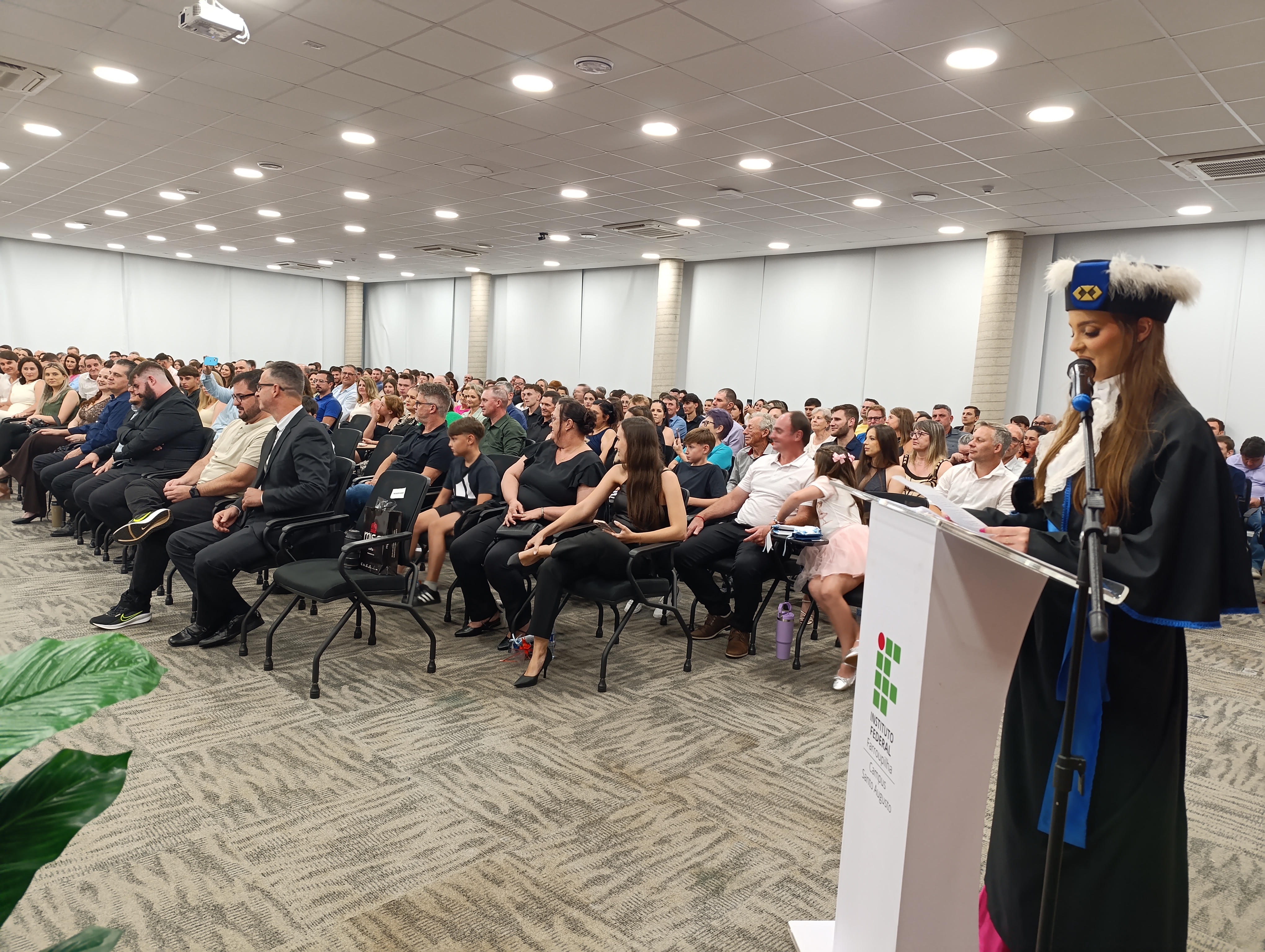 No dia 23, às 19h, foram certificados 55 concluintes, sendo 26 de Alimentos e 28 de Informática. Fizeram parte da mesa oficial, a Coordenadora do técnico em Alimentos, Greici Oliveira; a Paraninfa da 15ª turma do técnico em Alimentos, Giovana Kafer e o Patrono, Eduardo Dancler Hennemann; o Paraninfo da 15ª turma do técnico em Informática, Paulo Henrique Oliveira e a Patronesse e Coordenadora do técnico em Informática, Renira Carla Soares.