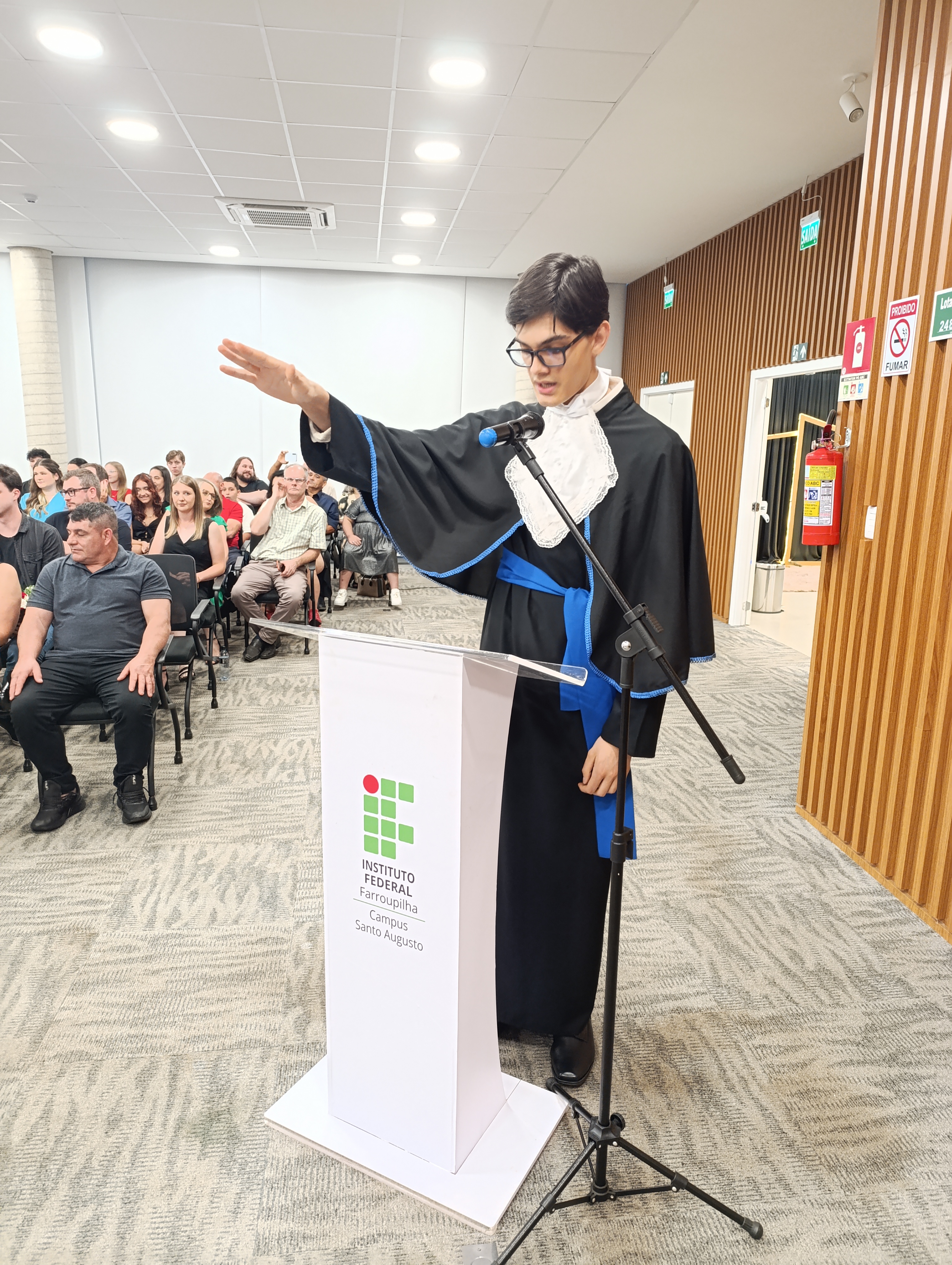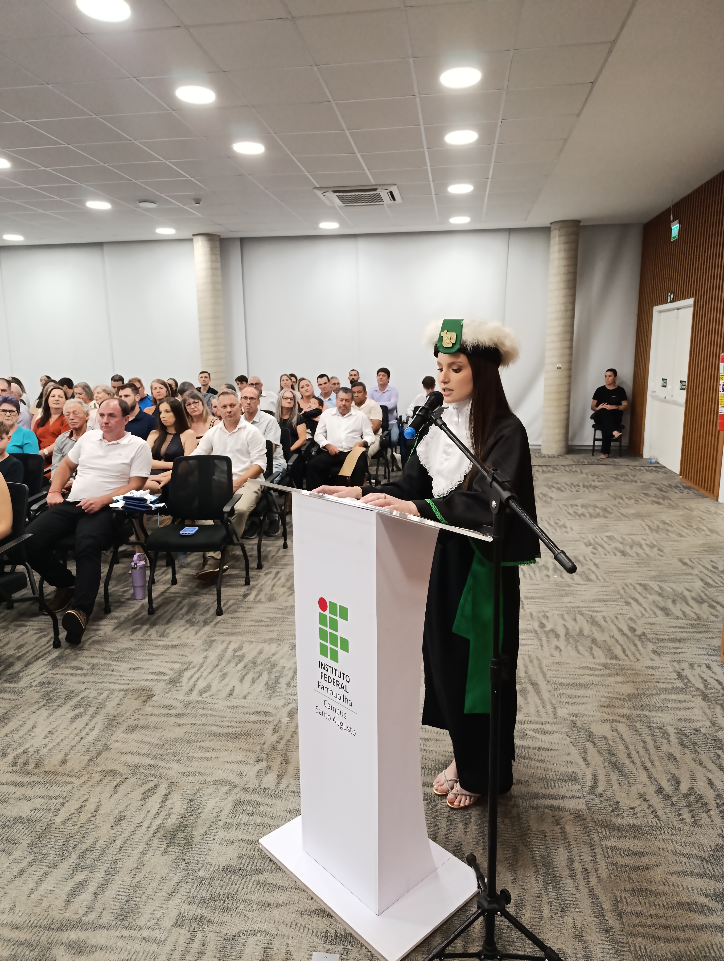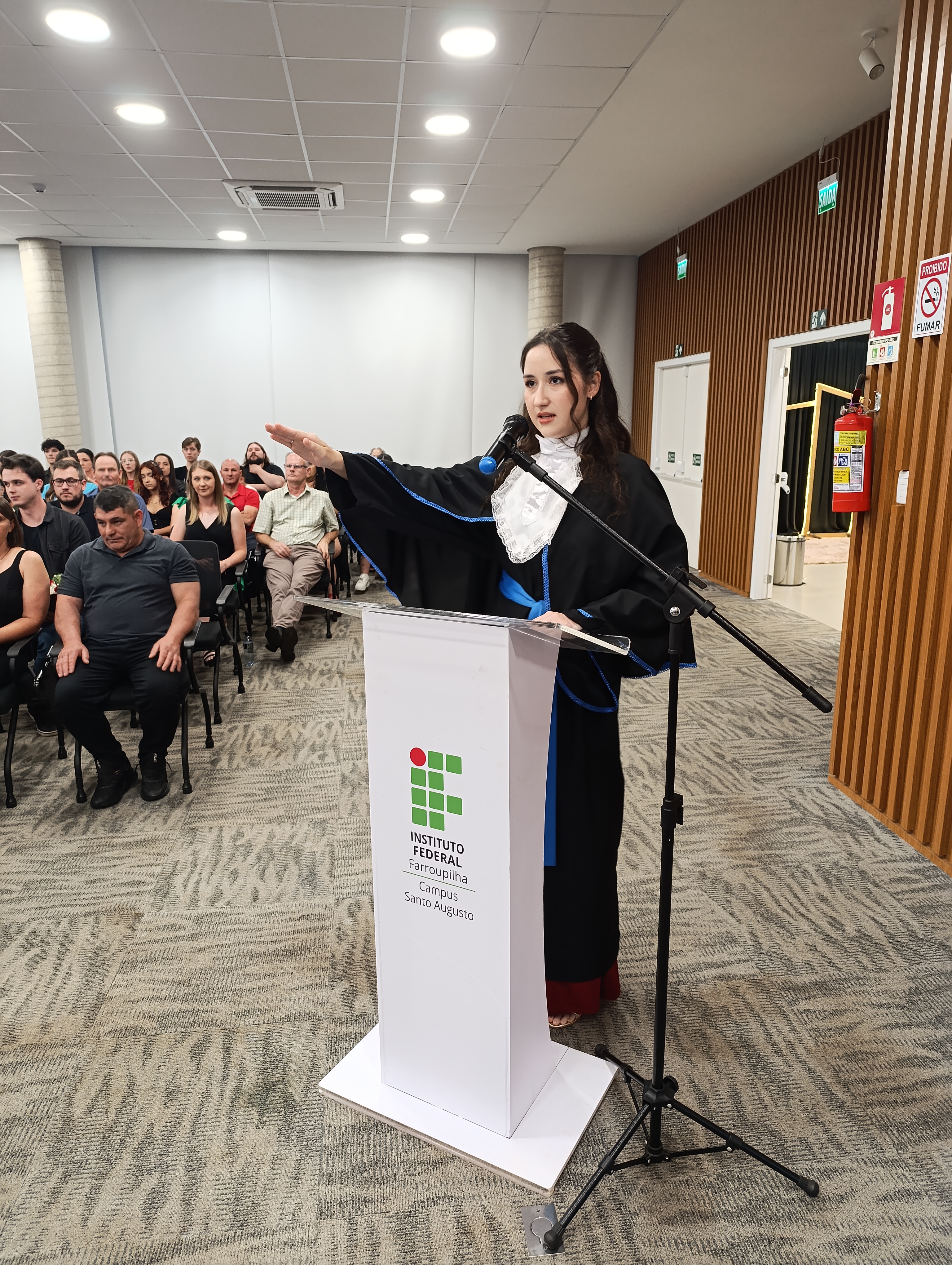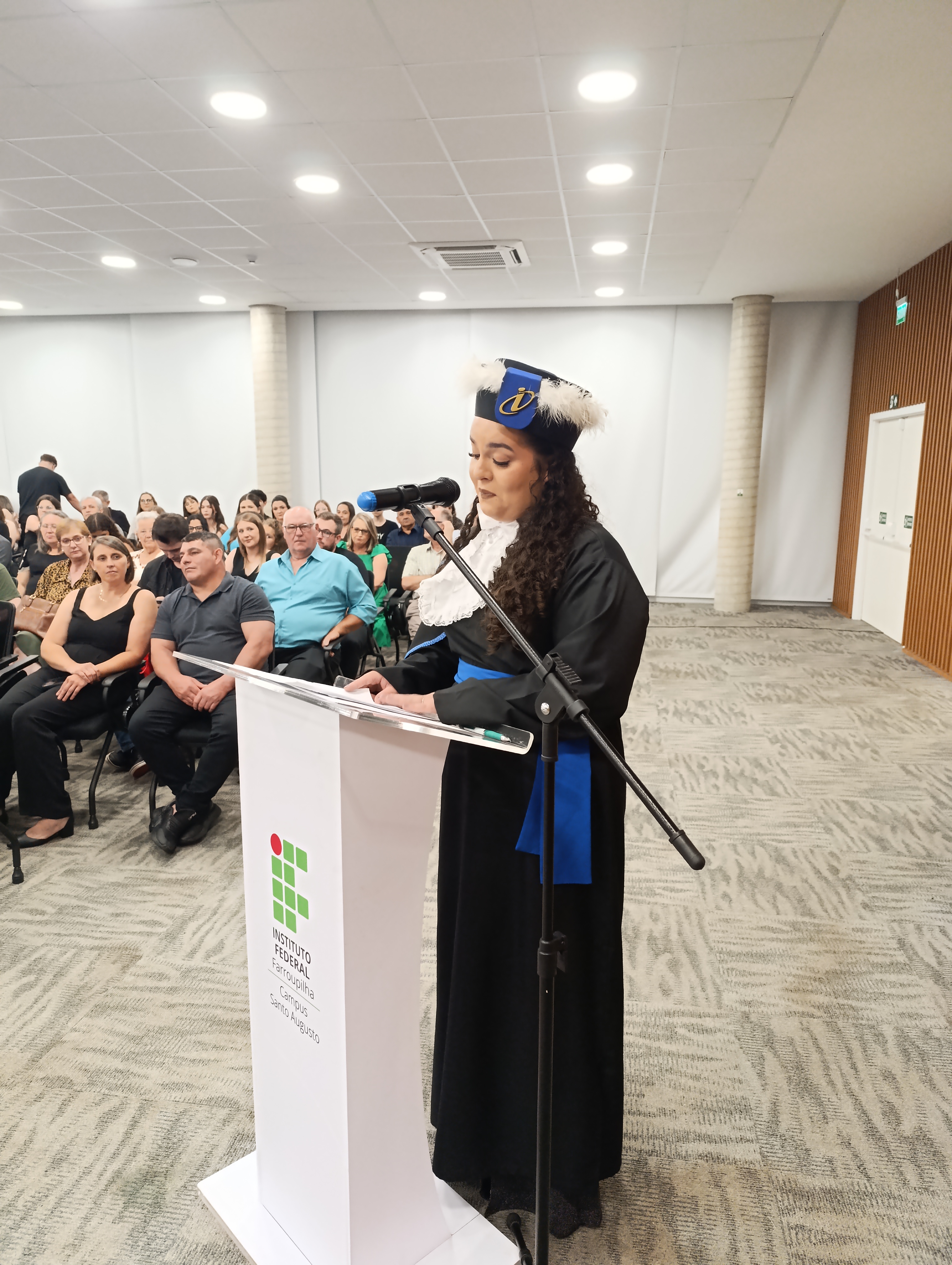 No dia 23, às 19h, foram certificados 55 concluintes, sendo 26 de Alimentos e 28 de Informática. Fizeram parte da mesa oficial, a Coordenadora do técnico em Alimentos, Greici Oliveira; a Paraninfa da 15ª turma do técnico em Alimentos, Giovana Kafer e o Patrono, Eduardo Dancler Hennemann; o Paraninfo da 15ª turma do técnico em Informática, Paulo Henrique Oliveira e a Patronesse e Coordenadora do técnico em Informática, Renira Carla Soares.