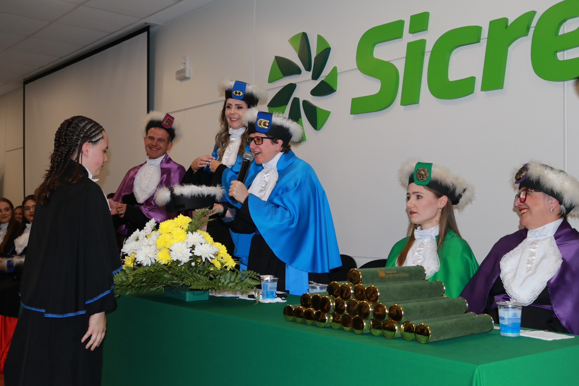 O IFFar – Campus Santo Augusto realizou, nos dias 22 e 23 de dezembro, as solenidades de certificação de 108 estudantes dos cursos técnicos integrados ao ensino médio de Administração, Agropecuária, Alimentos e Informática, presididas pela Diretora Geral, professora Márcia Fink. O local das solenidades foi o Auditório da SICREDI de Santo Augusto, mais uma vez, gentilmente cedido pela entidade.
