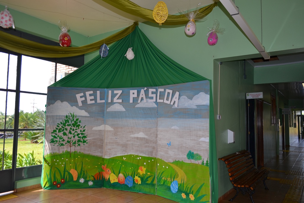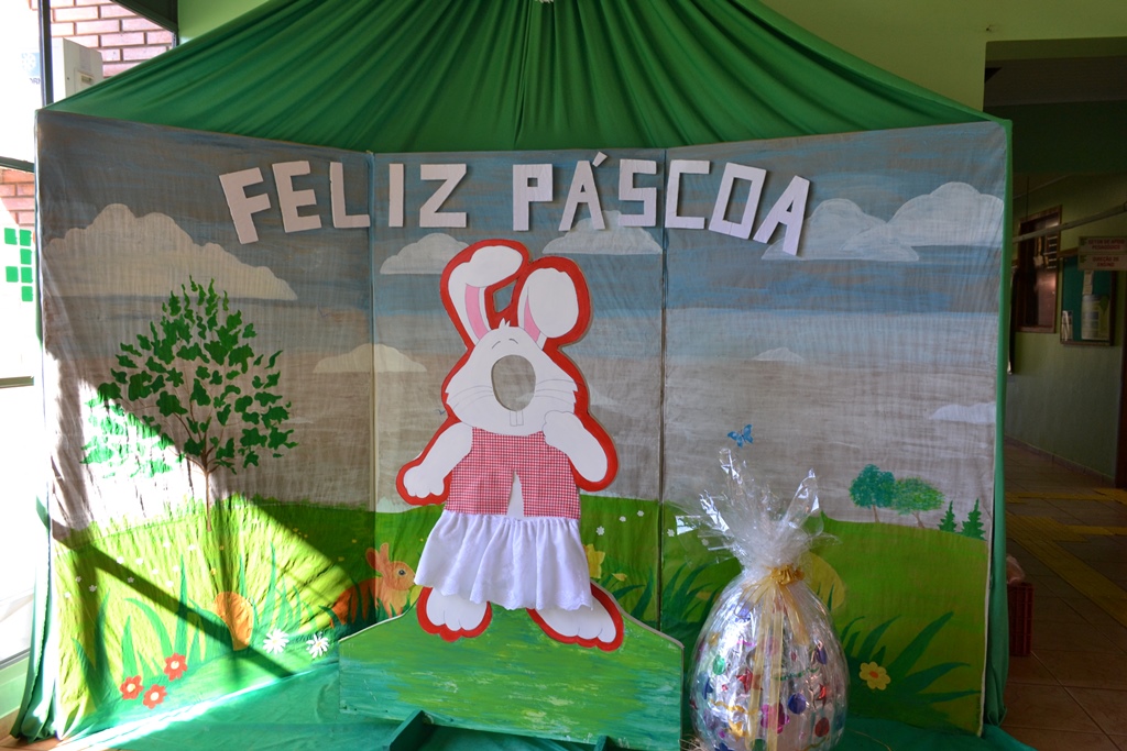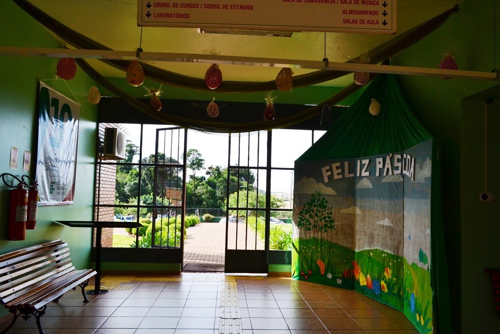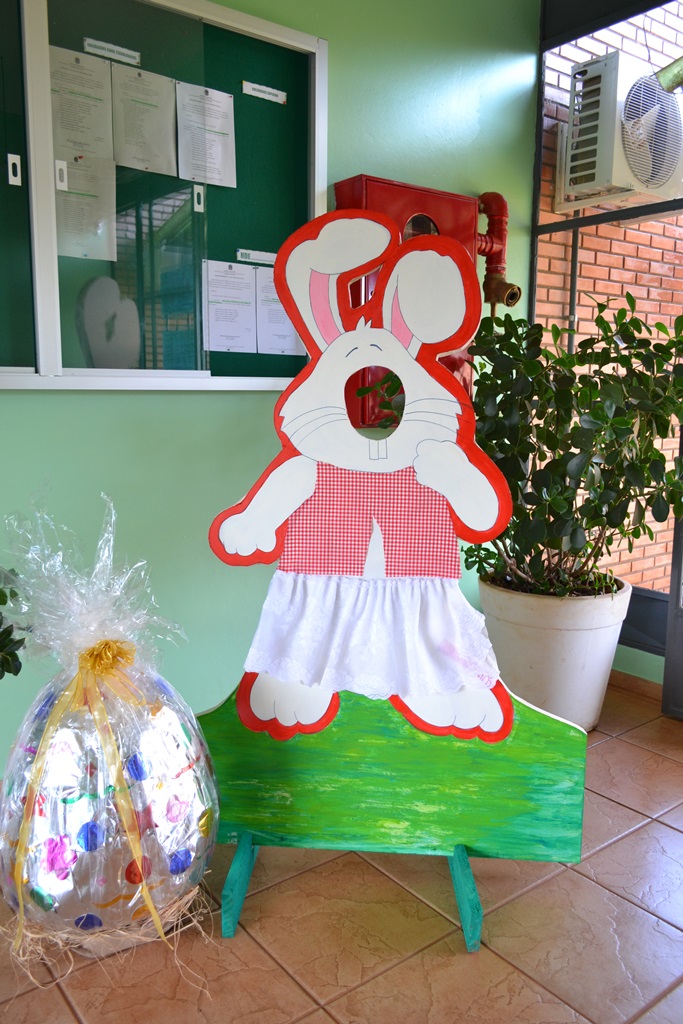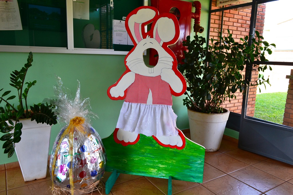 Um cenário alegre e divertido, composto por ovos temáticos e coelhinhos, enfeita a época mais doce do ano no IFFar - Campus Santo Augusto. A bela decoração foi produzida pela Produtora Cultural, Stela Paris.