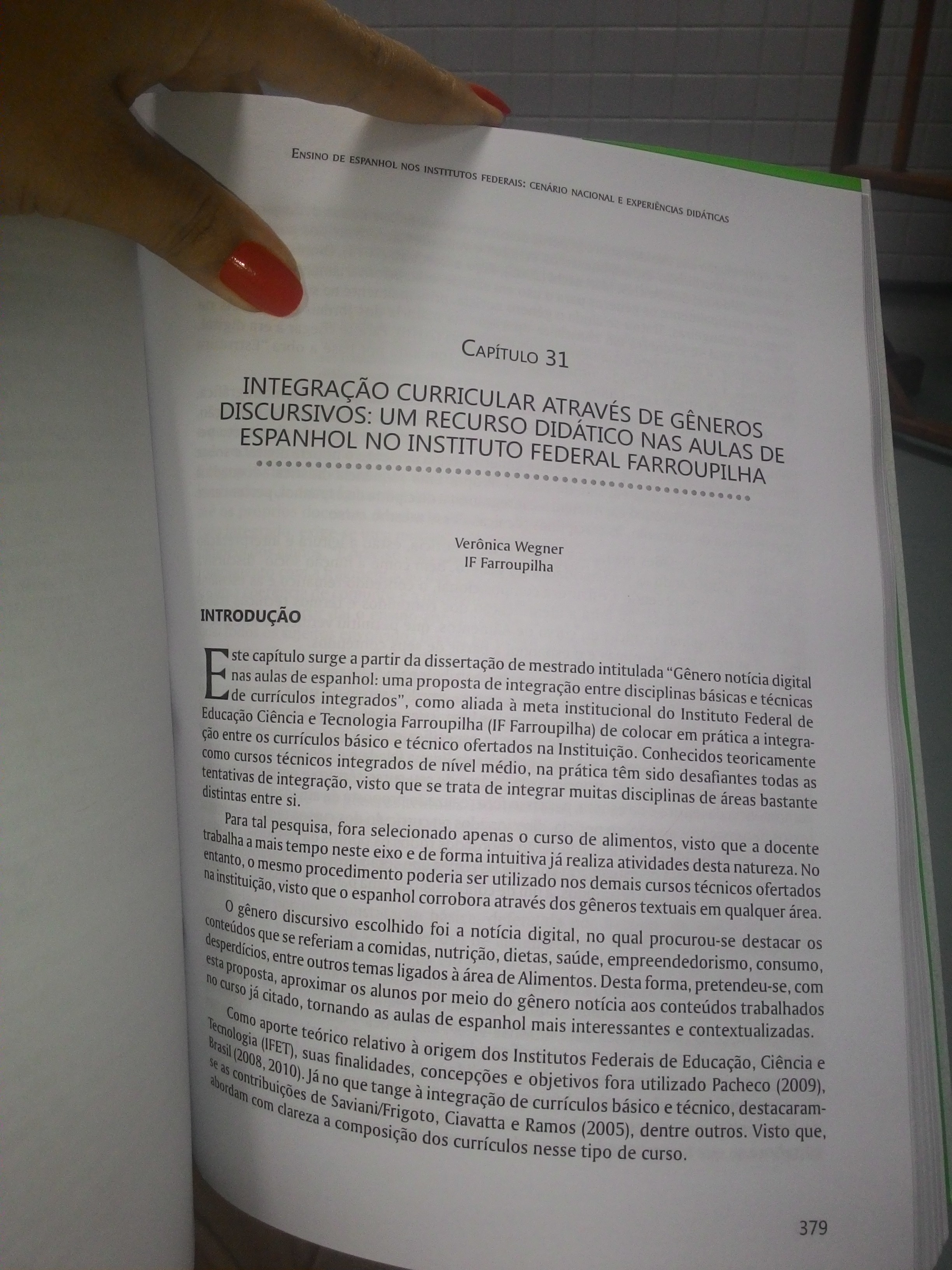 Segundo Verônica este livro é um marco no ensino de Espanhol a nível nacional, pois reúne 43 artigos representativos de todos os institutos federais. “É praticamente uma enciclopédia com quase 600 páginas, nas quais professores apresentam a situação do espanhol em seus campi, bem como suas práticas didáticas”, desta a professora.