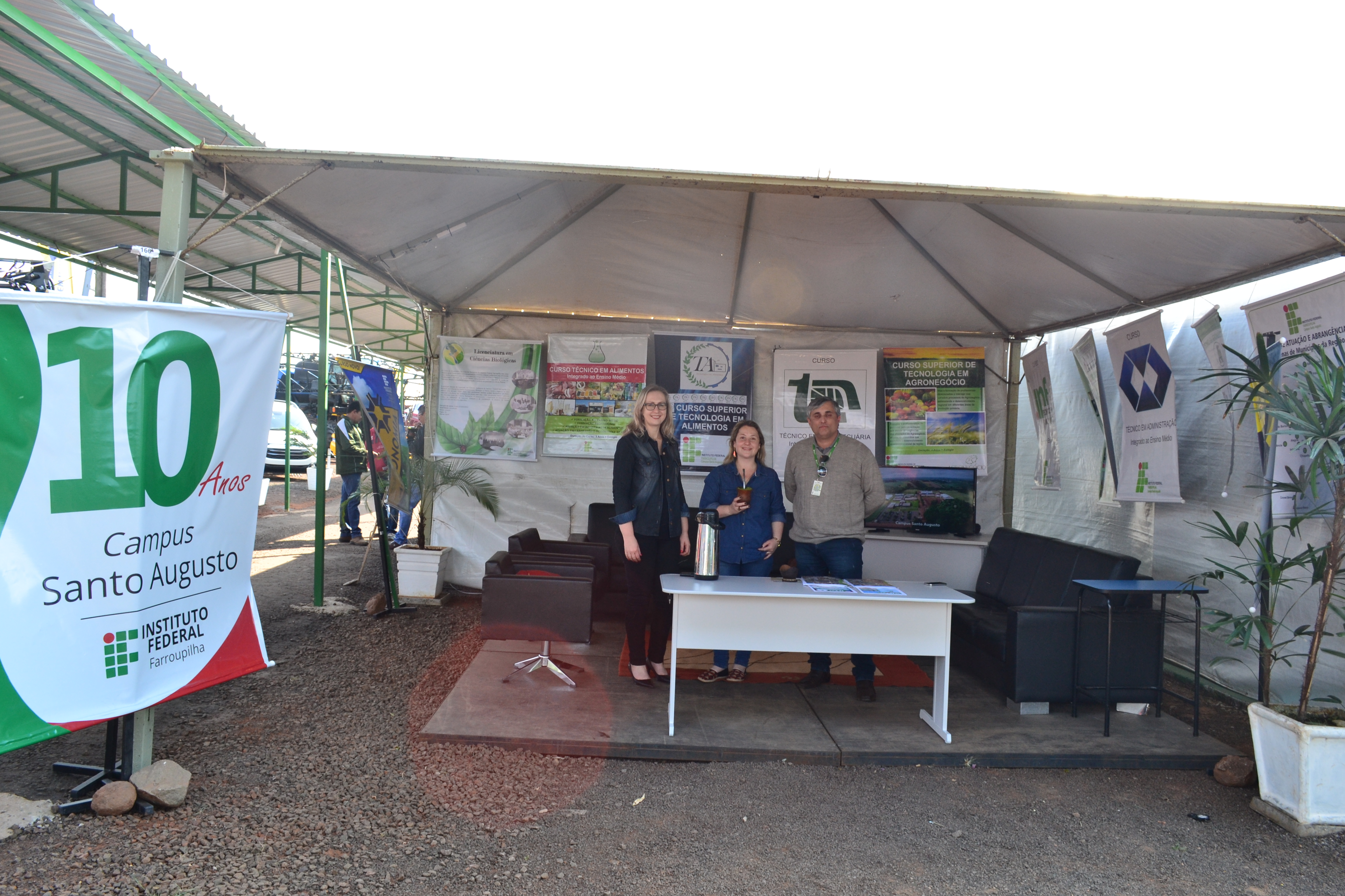 O IFFar – Campus Santo Augusto esteve presente de 10 a 13 de agosto com um estande na 20ª EXPOFEIRA e a 8ª FEICISA realizadas no Parque do Sindicato Rural em Santo Augusto. A Diretora Geral da instituição, Verlaine Gerlach, participou da abertura oficial do evento na manhã de sexta-feira, dia 11, ao lado de autoridades como o deputado federal Jerônimo Goergen, o Secretário de Agricultura Ernani Polo, o prefeito Naldo Wiegert, a presidente da ACISA Marinês Antonow, secretários, vereadores e representantes de entidades como a Farsul.