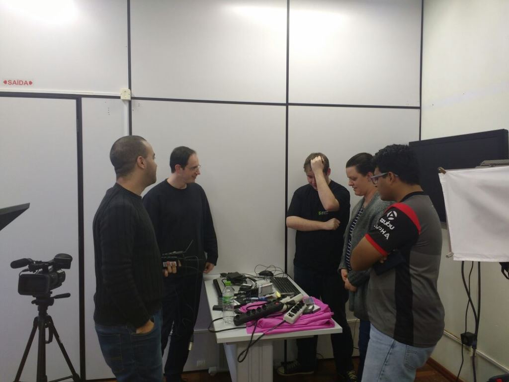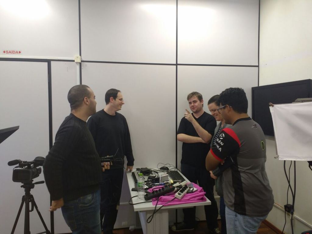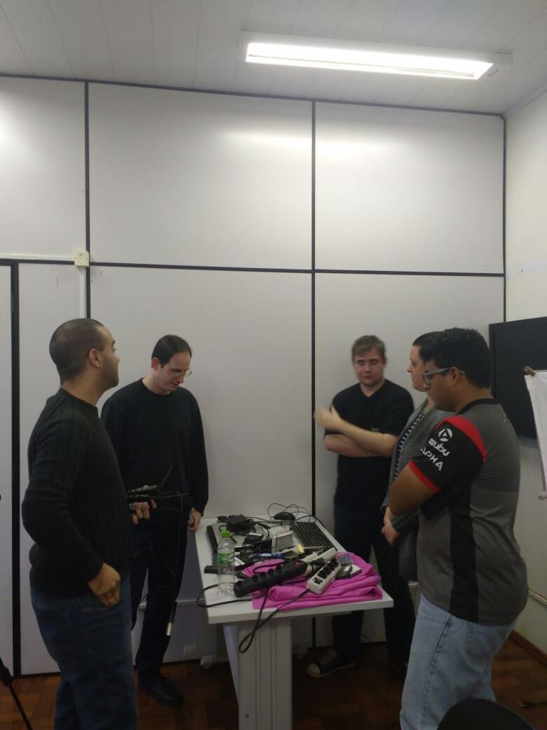 Nos dias 16 e 17 de agosto foi realizada no IFFar – Campus Santo Augusto uma capacitação em audiovisual para aprimorar a utilização do Estúdio de TV, envolvendo as áreas de equipamentos e edição, produção de videoaulas, aprendizado de técnicas de câmera, iluminação e áudio.