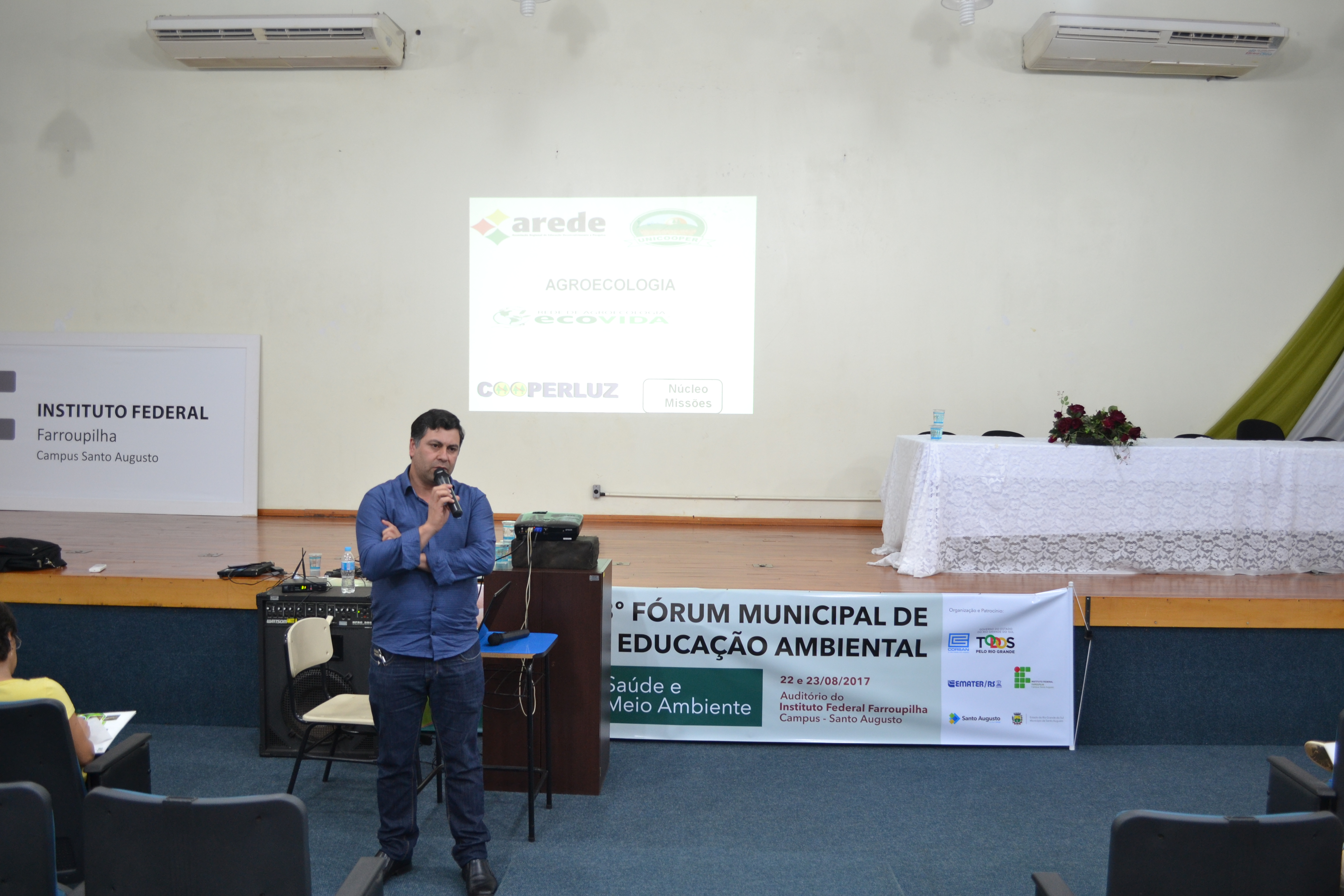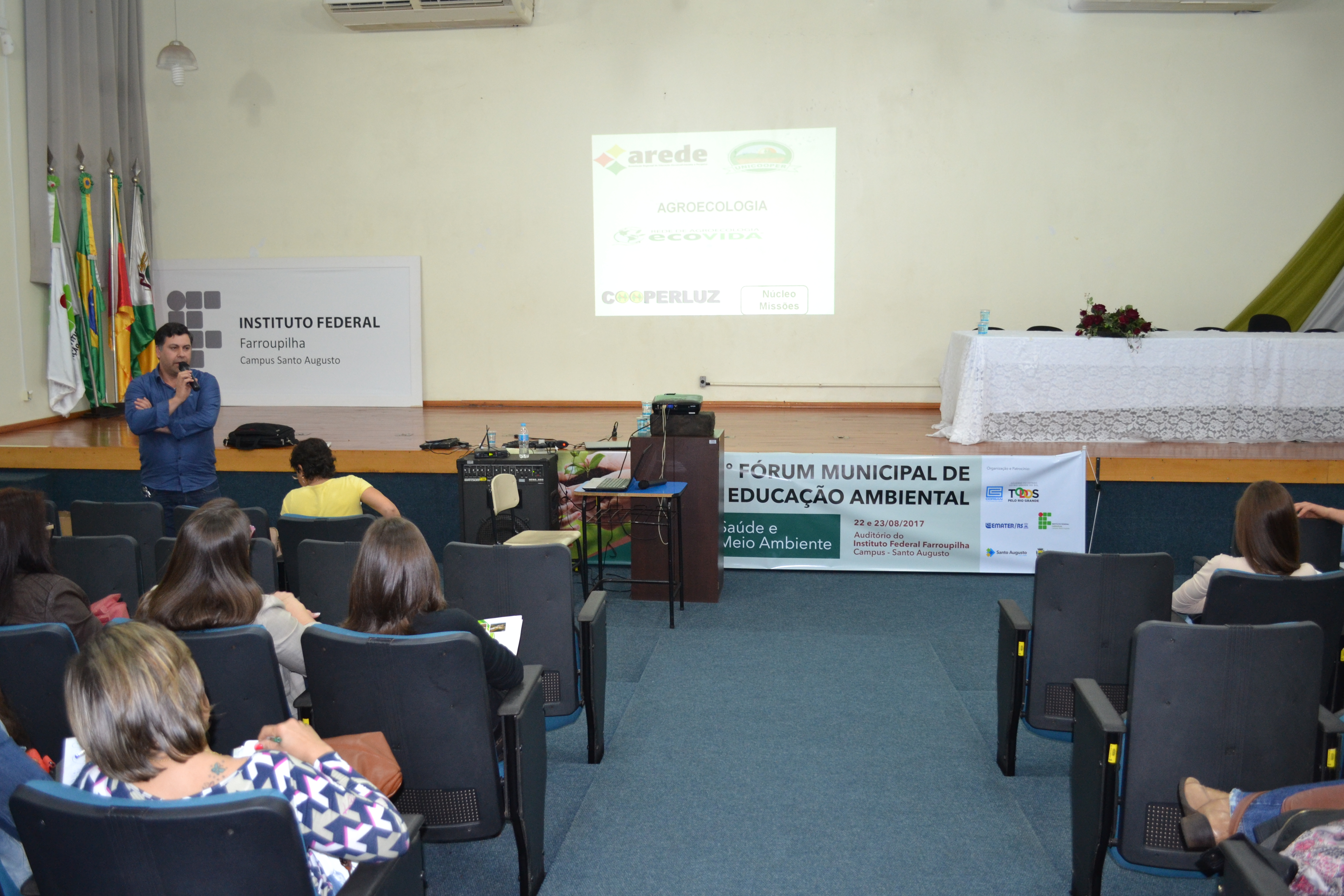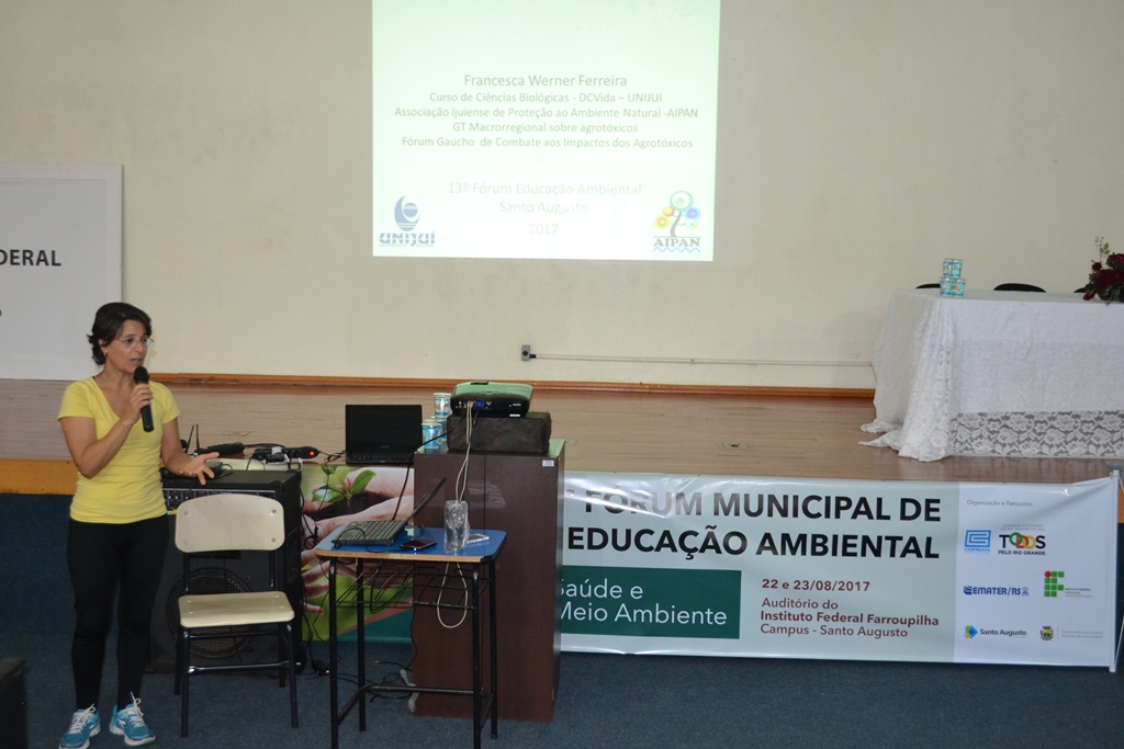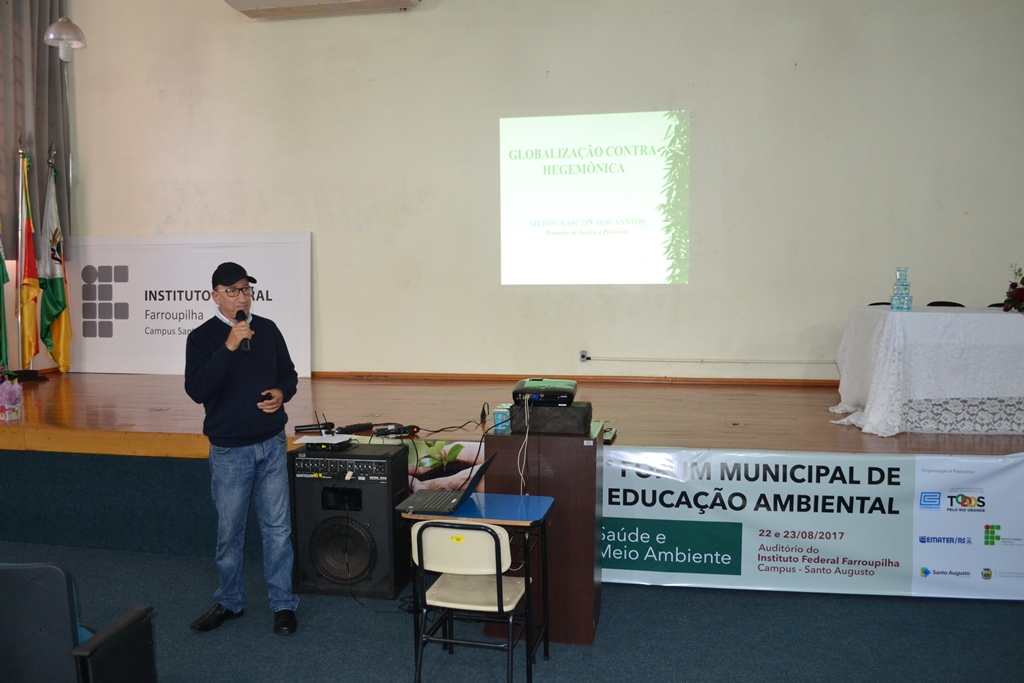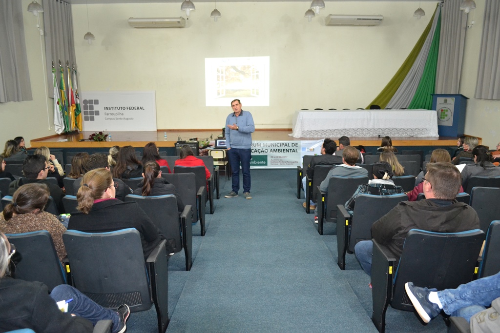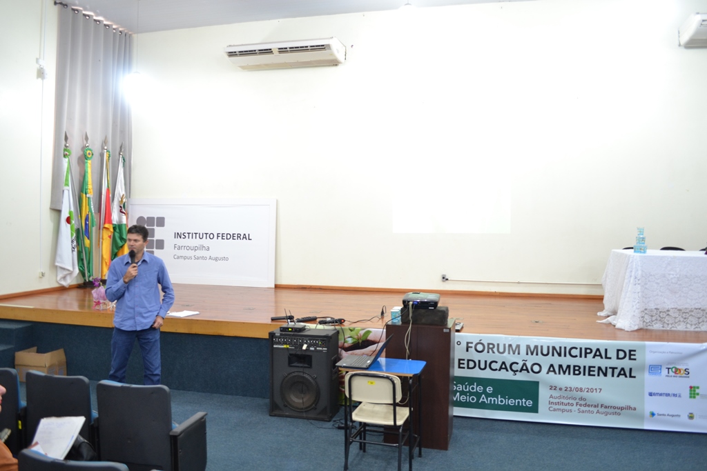 O IFFar - Campus Santo Augusto foi sede nos dias 22 e 23 de agosto do 13º Fórum Municipal de Educação Ambiental, com o tema “Saúde e Meio Ambiente”. O evento foi organizado por uma comissão constituída pelo IFFar - Campus Santo Augusto, Emater/RS-ASCAR, Corsan e Prefeitura Municipal de Santo Augusto, através das Secretarias de Educação e Cultura – SMEC, Agricultura –SEDAGRO e Meio Ambiente, teve 150 participantes inscritos.