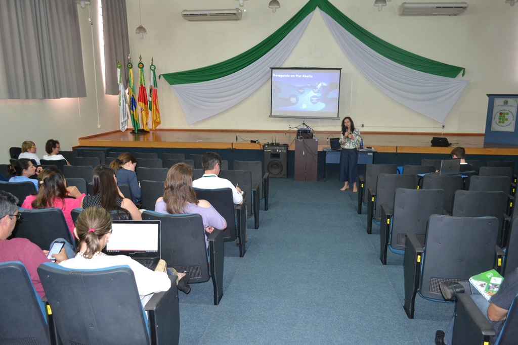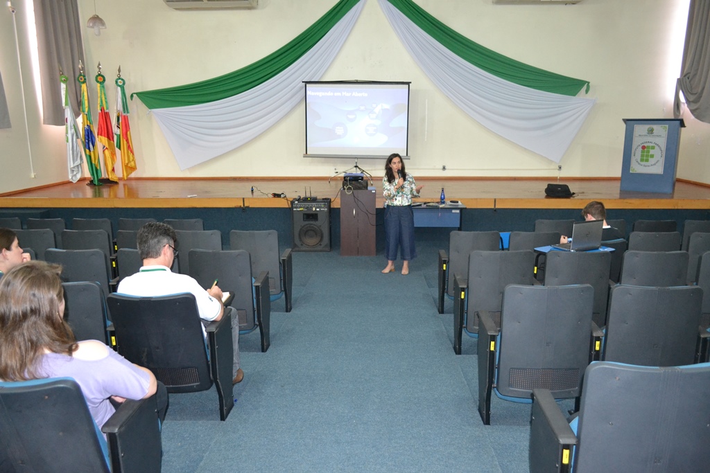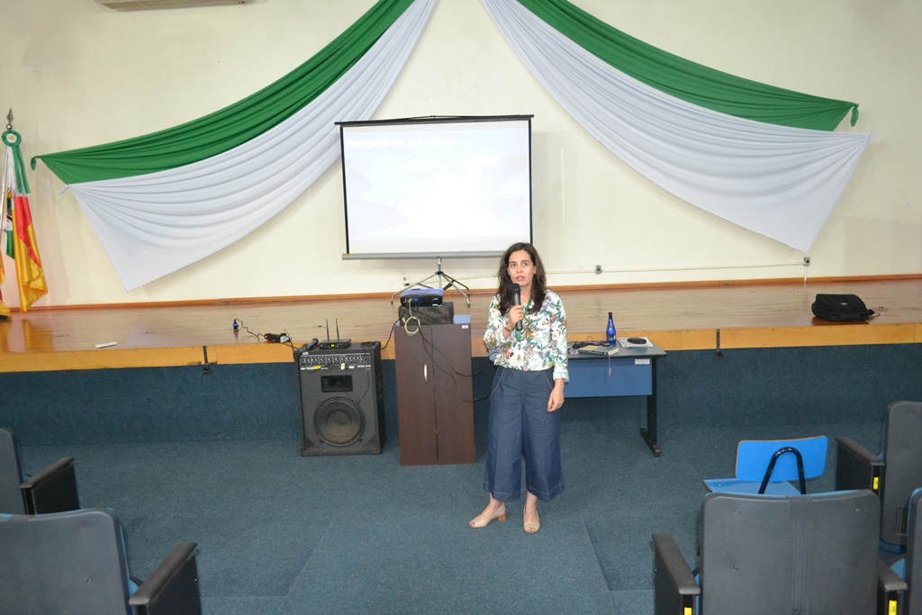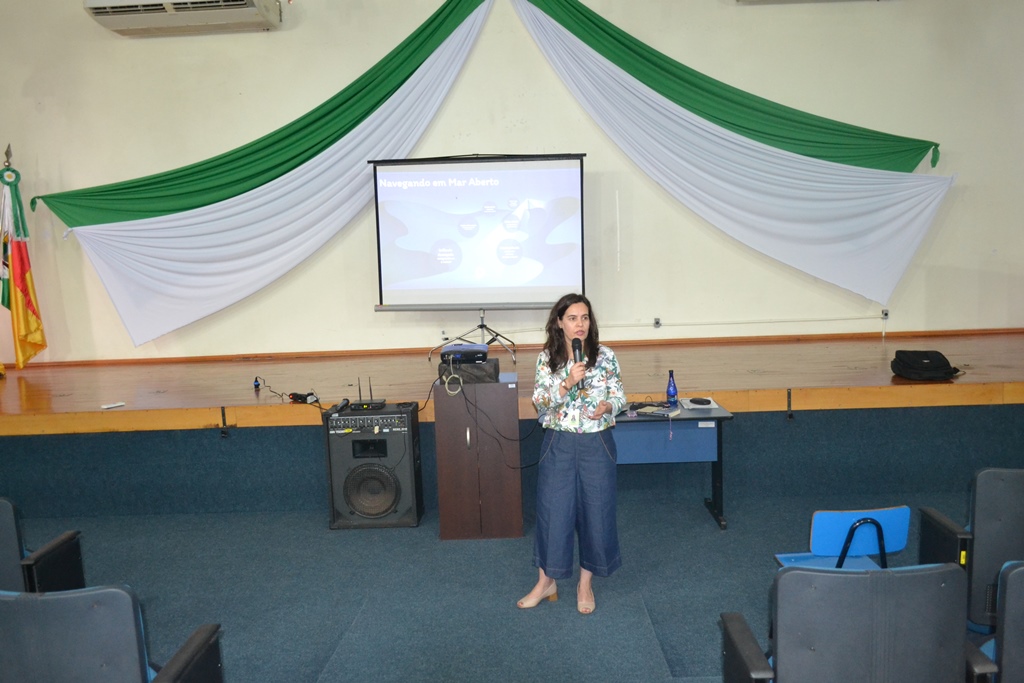 Para iniciar as discussões referentes à temática, inicialmente houve o depoimento de colegas docentes da disciplina de química, Ana Cristina Sulzbach, Carlos Wyrepkowski, Marieli da Silva Marques e Roberta Neves dos Reis. Na sequência, a professora Inaiara Oliveira ministrou a palestra “Navegando em mar aberto”.