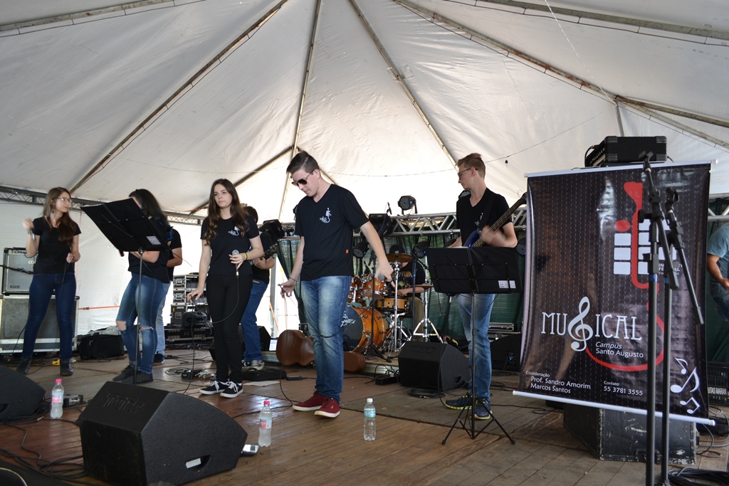 Na oportunidade o Professor Sandro, falou sobre o projeto e também sobre o IFFar - Campus Santo Augusto, deixando um convite para que a comunidade buscasse mais informações sobre cursos e formas de ingresso, acessando o site da instituição. Segundo o professor Sandro, a apresentação foi muito legal e teve boa receptividade por parte do público presente na feira na tarde de sábado. “As pessoas interagiram com a banda e aplaudiram bastante, foi bem empolgante”.