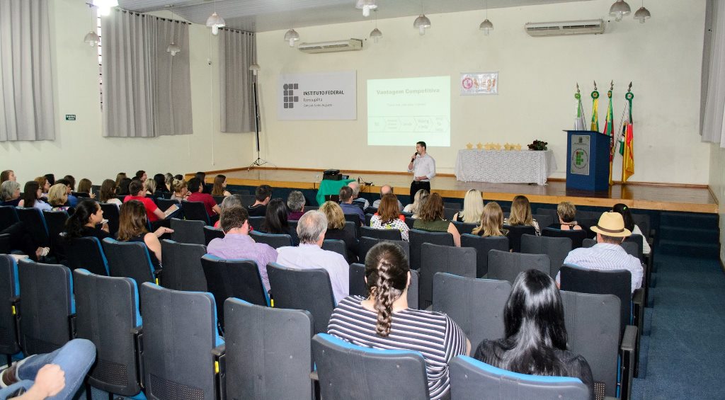Na ocasião, antes da entrega da premiação, os empresários prestigiaram, juntamente com a Diretora Geral do Campus Santo Augusto Verlaine Gerlach, o prefeito municipal Naldo Wiegert e a presidente da Acisa, Maria Inês Antonow, as palestras, sobre “Competitividade”, com Jerri Voos e “Marketing”, com a professora Simone Beatriz Nunes Ceretta.