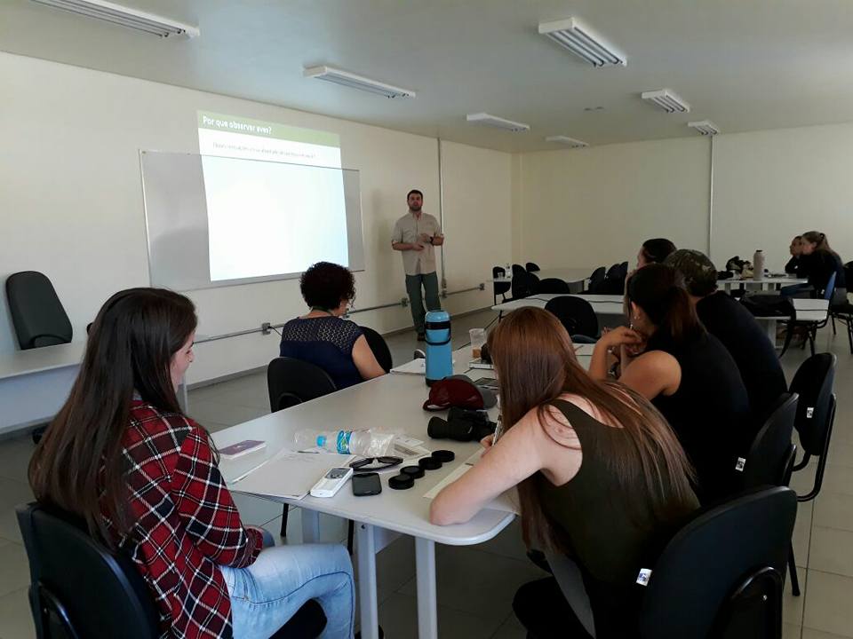 Foram abordados os seguintes tópicos: Introdução à saída de campo; Uso do binóculo; Saída para observação de aves comuns ao longo do percurso interpretativo em áreas verdes ao redor do IFFar - Campus Santo Augusto; Primeiros passos para observação das aves; Fatores que influenciam observação das aves; Características e distribuição das espécies de aves; Canto das aves; Espécies comuns na região noroeste do Estado.