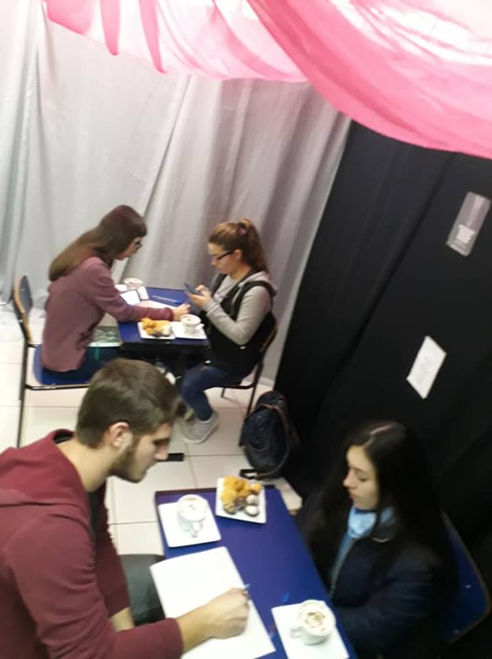 O projeto é um estudo de caso, mas para complementar as informações, as alunas sugeriram uma atividade de experimentação com os alunos, a qual se dividiu em dois momentos: em sala de aula convencional e em um ambiente simulado de Cafeteria. Nos dois encontros os alunos realizaram as mesmas tarefas, visando identificar em qual ambiente eles se sentiam mais criativos, motivados e produtivos ao trabalhar, e o quanto, a música, o aroma, a degustação, as cores, interferem no processo criativo. Após as tarefas, realizou-se uma conversa com os participantes sobre a temática, cujos resultados serão apresentados na Mostra Técnica do IFFar.