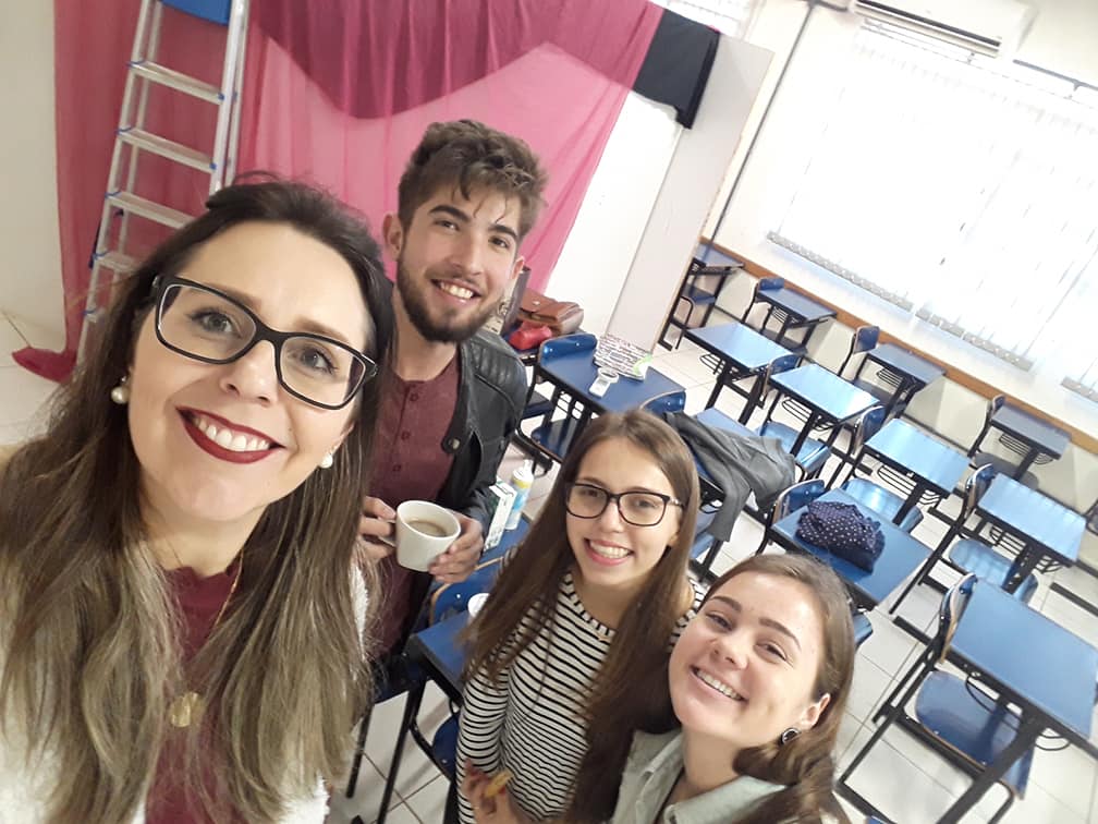 A professora Simone Beatriz Nunes Ceretta e as alunas do 3º ano do curso técnico em Administração do IFFar – Campus Santo Augusto, Luana Bartsch e Bruna Rehbein, bolsistas de Projeto de Pesquisa, desenvolveram na tarde de ontem, 20 de junho, uma atividade com alguns estudantes do técnico em administração sobre Coworking.