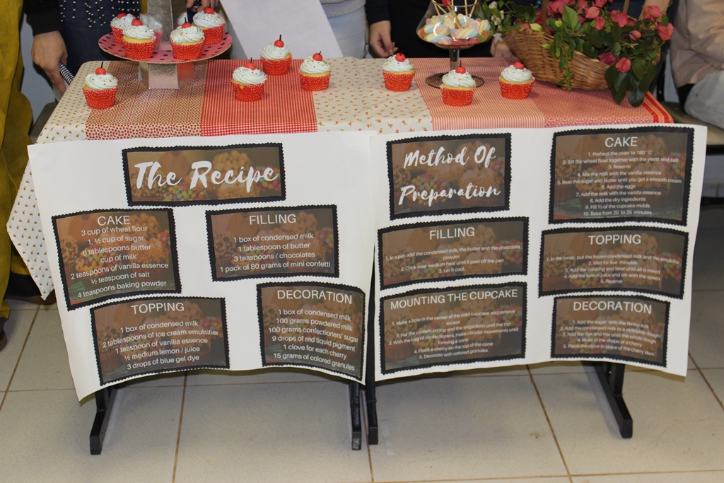 Além de criar uma confeitaria com um slogan exclusivo e um cupcake especial, os alunos elaboram a apresentação da receita e modo de preparo, bem como, a propaganda do cupcake em língua inglesa e um cenário físico para a exposição. A turma foi dividida em oito equipes, que tiveram ao todo 2h30 para a execução das receitas e preparação do cenário.
