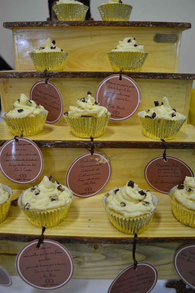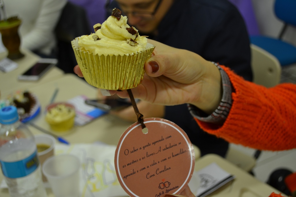 - Café Literatura, cupcake "Vanilla and Walnuts, apresentou a combinação de doces, com café e uma boa leitura.