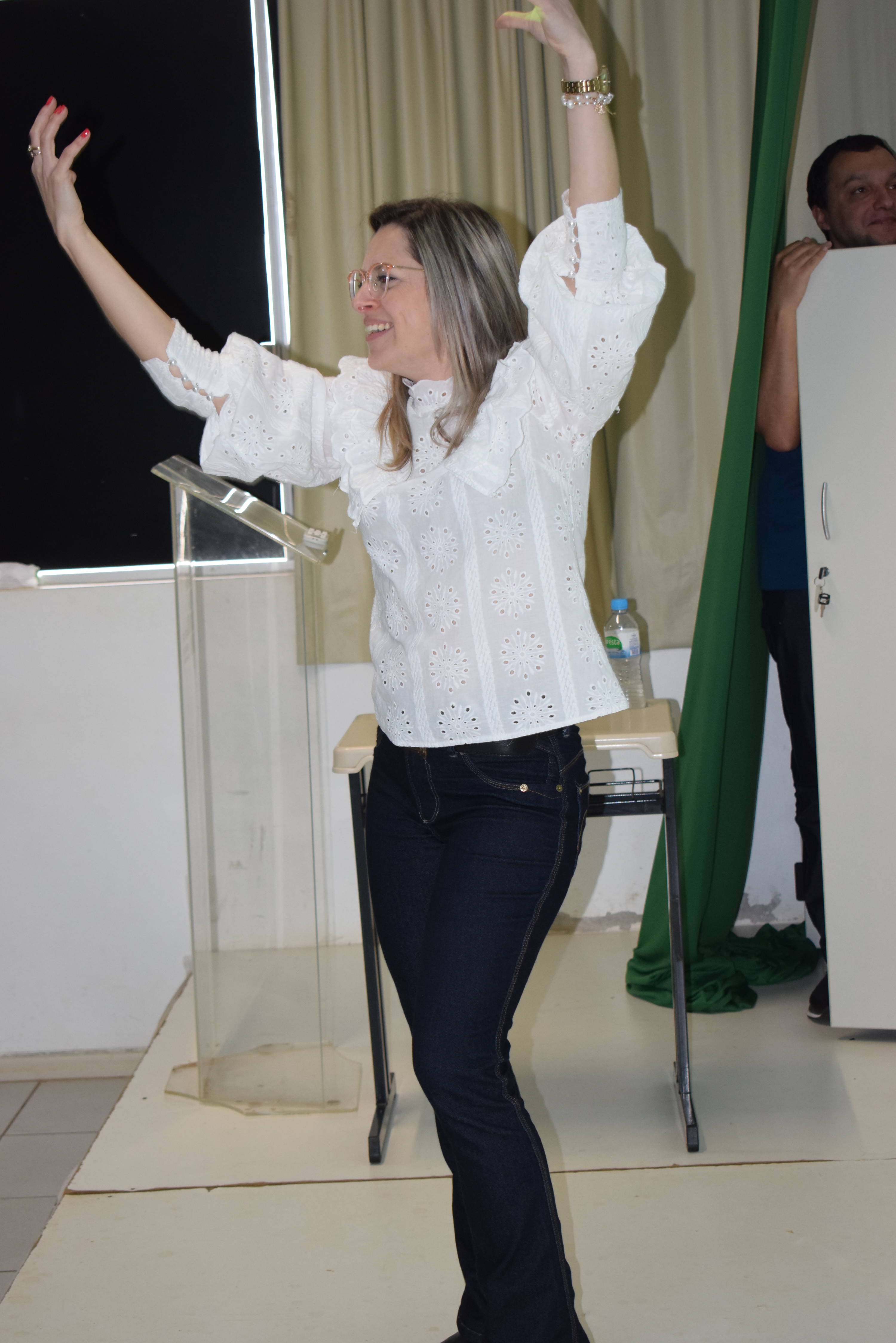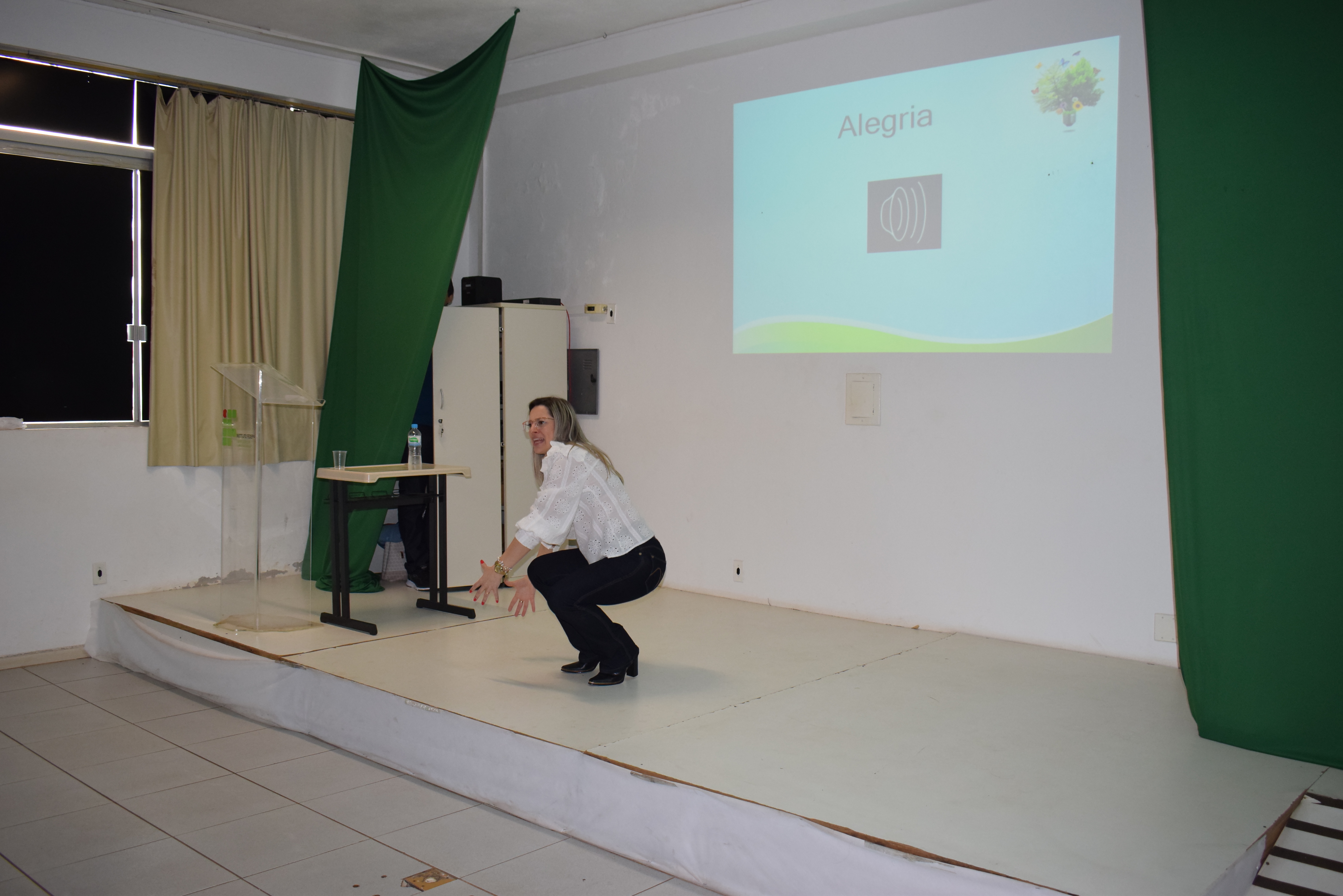 Aline finalizou a palestra, durante dois momentos da manhã, pedindo que o público presente ficasse em pé, para juntos colher frutos – todos levantaram e ao tocar a música, eles simbolicamente colheram frutos, comeram, distribuíram entre os colegas e, o mais importante, compartilharam alegria.