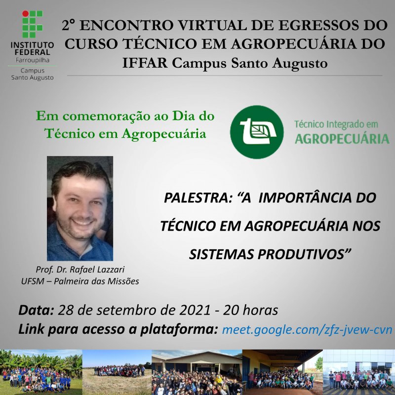 Convidamos a todos para participarem da defesa de dissertação da aluna do Programa de Mestrado Profissional em Educação Profissional e Tecnológica - ProfEPT, Naires de Cássia Nunes de Moraes. O trabalho intitulado “A formação de Professores de Matemática do Instituto Federal Farroupilha – IFFar e Educação Profissional e Tecnológica: possibilidade de integração do currículo com a abordagem ciência, tecnologia, sociedade e ambiente”, orientado pela Docente Dra. Taniamara Vizzoto Chaves, é a primeira defesa de dissertação do ProfEPT que acontece no IFFar - Campus São Borja.