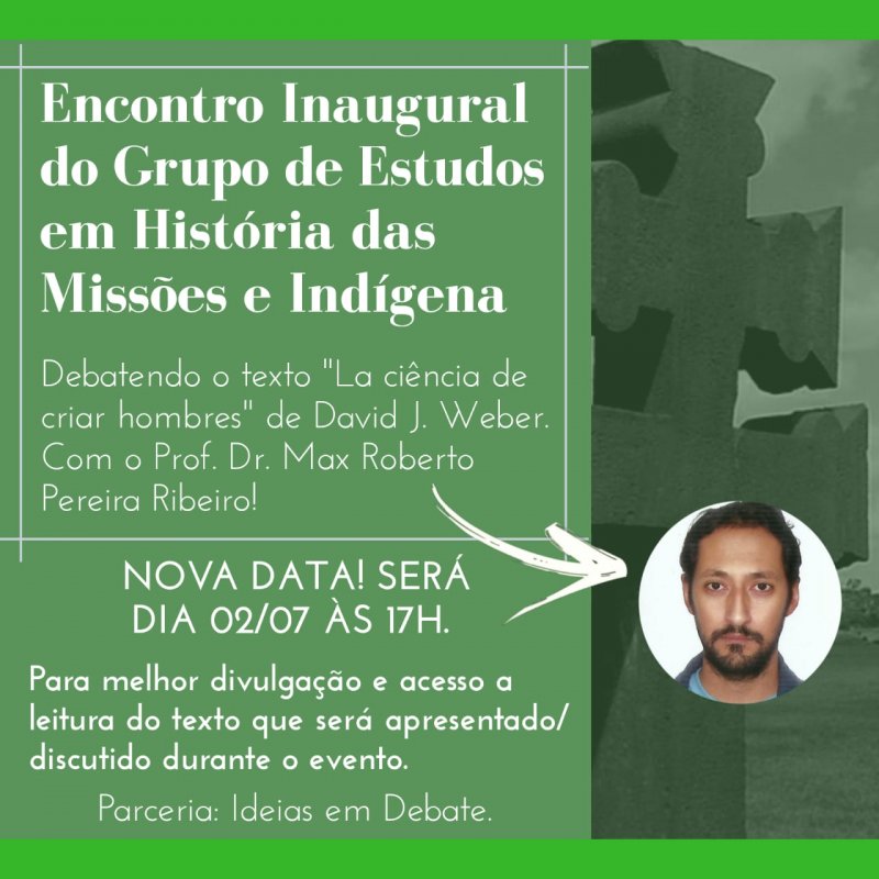 A apresentação e o debate do encontro inaugural ficará por conta do Prof. Max Roberto Pereira Ribeiro, Doutor em História pela UNISINOS, que se dedica à pesquisa da história dos guaranis missioneiros e povos indígenas no espaço platino entre os séculos XVIII e XIX.