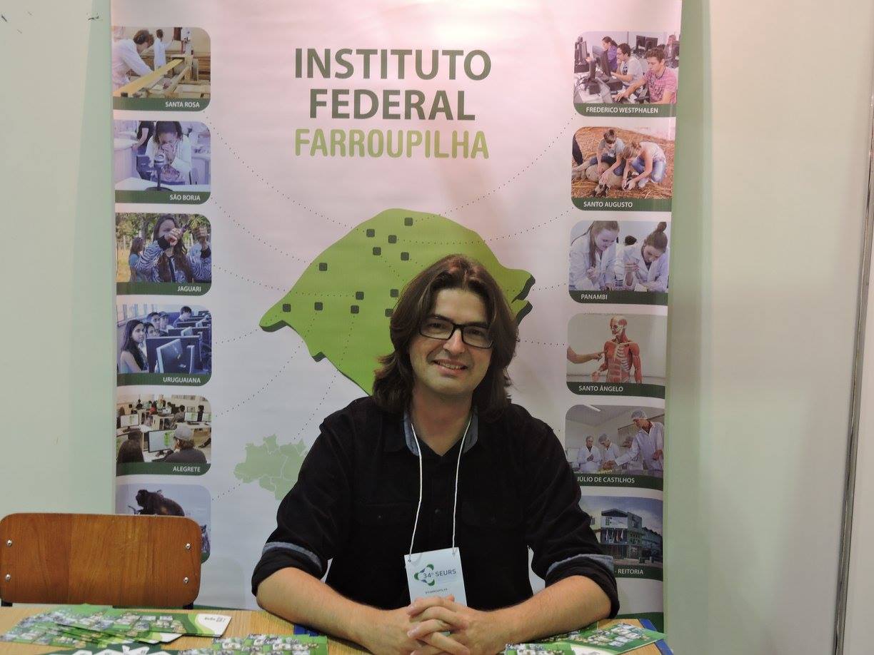 Professor Jairo Oliveira no estande do IF Farroupilha