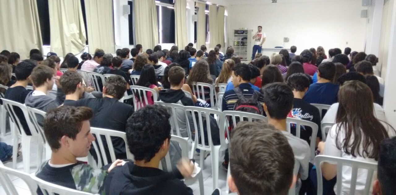 Em meio aos preparativos para a abertura dos Jogos Estudantis do Instituto Federal Farroupilha – JEIFF, a sala 402 estava lotada. O público teve a oportunidade de ouvir a palestra e debater ideias com o Professor de História.