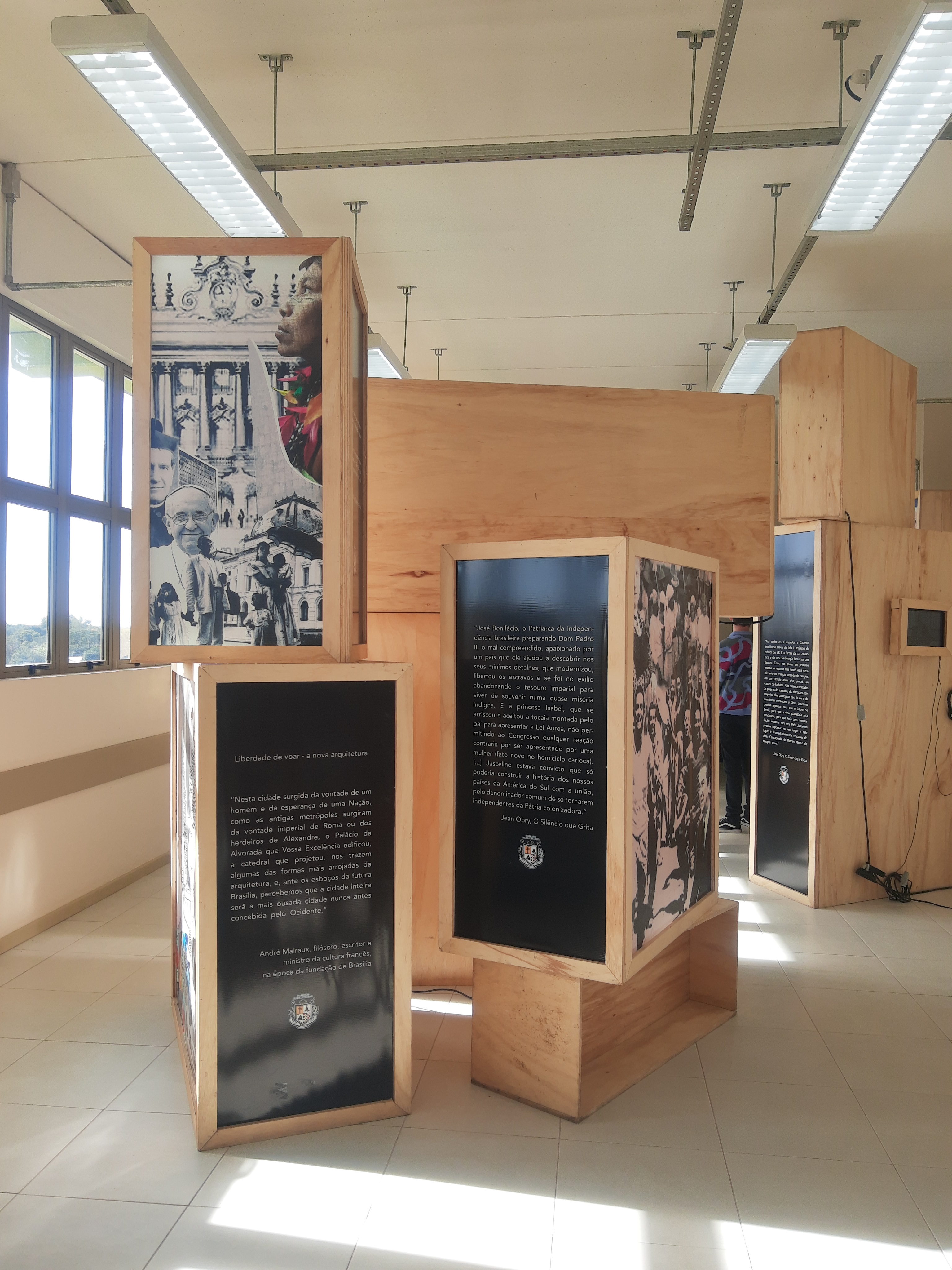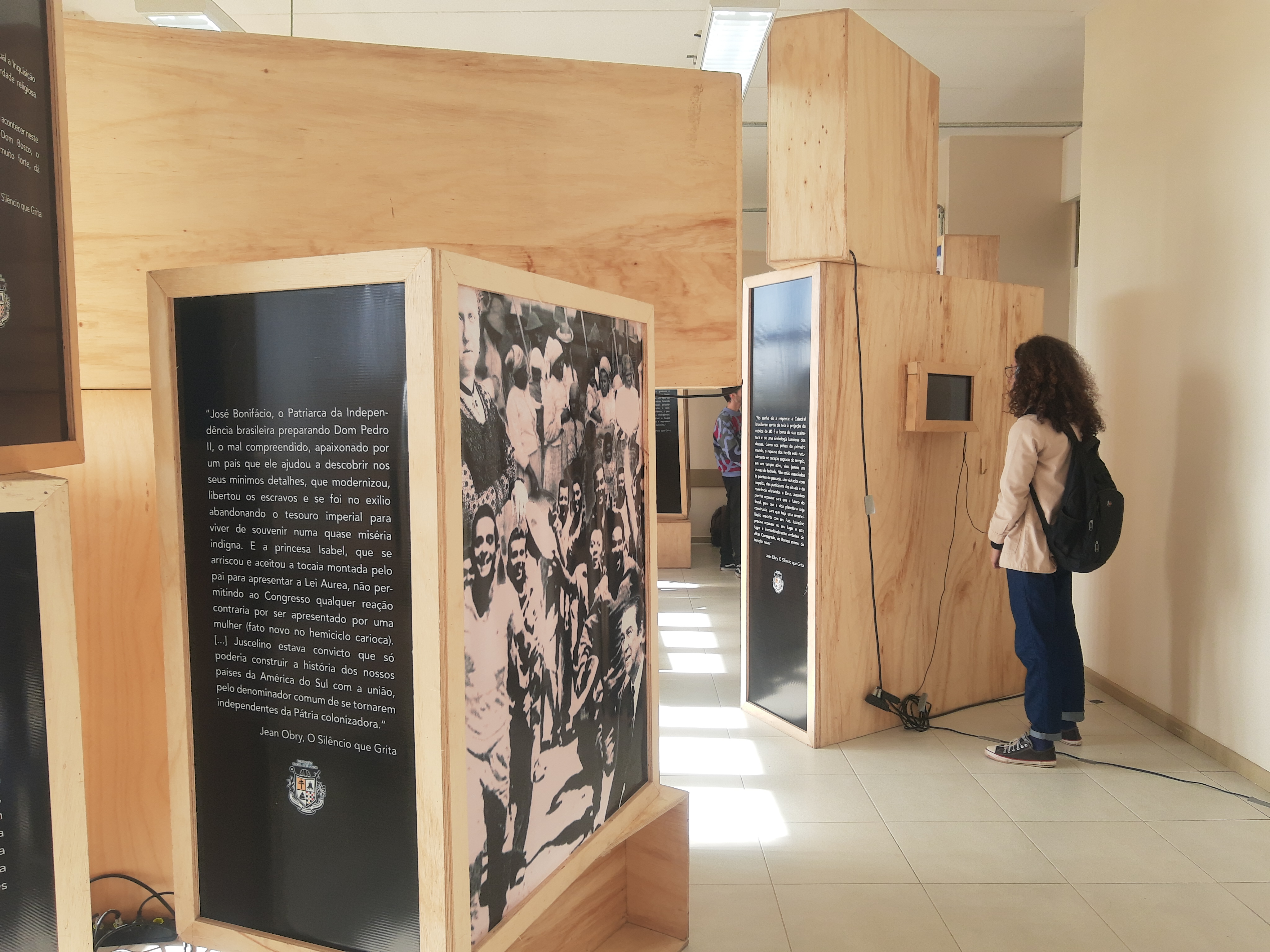 A exposição com obras artísticas e áudios, conta a história do 21° presidente do Brasil. Os monitores, que passaram por capacitação, explicam os elementos da exposição.