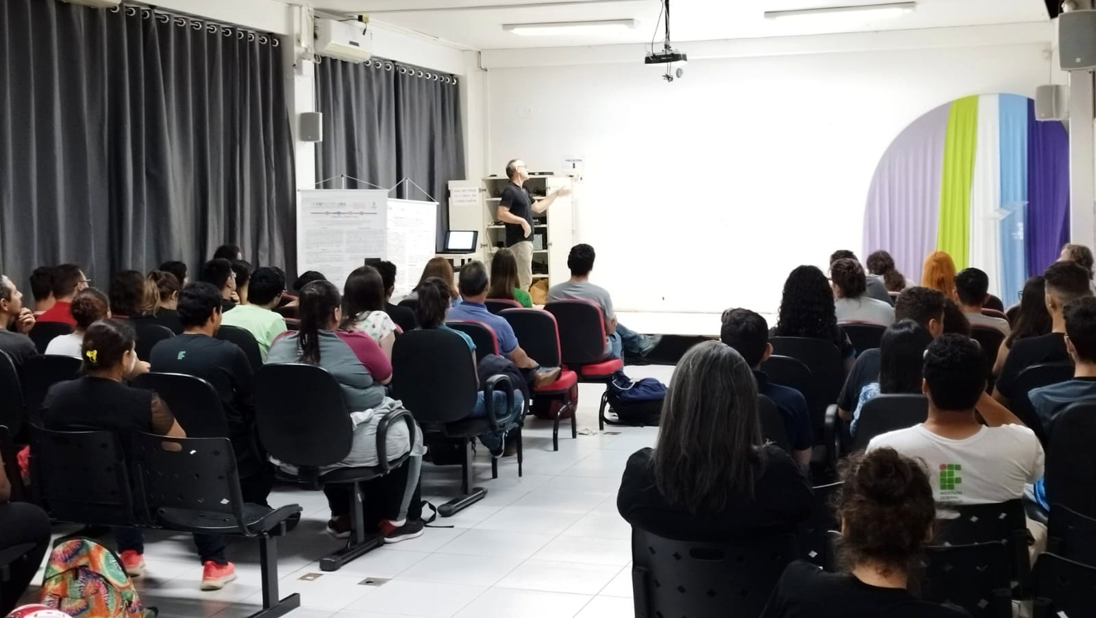 A palestra foi realizada para os alunos do curso de Licenciatura em Matemática e dos cursos técnicos integrados ao ensino médio e estava aberta aos demais cursos do IFFar, bem como para pessoas do público externo interessadas no tema.
