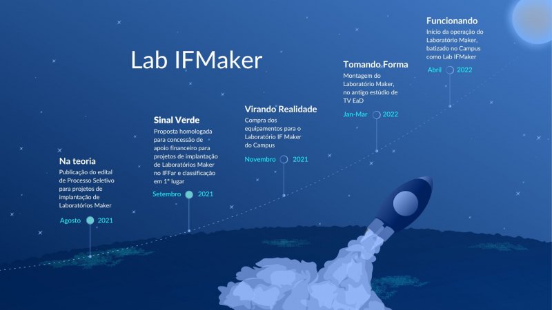 Imagem: Arte gráfica da linha do tempo da implantação do Lab IFMaker