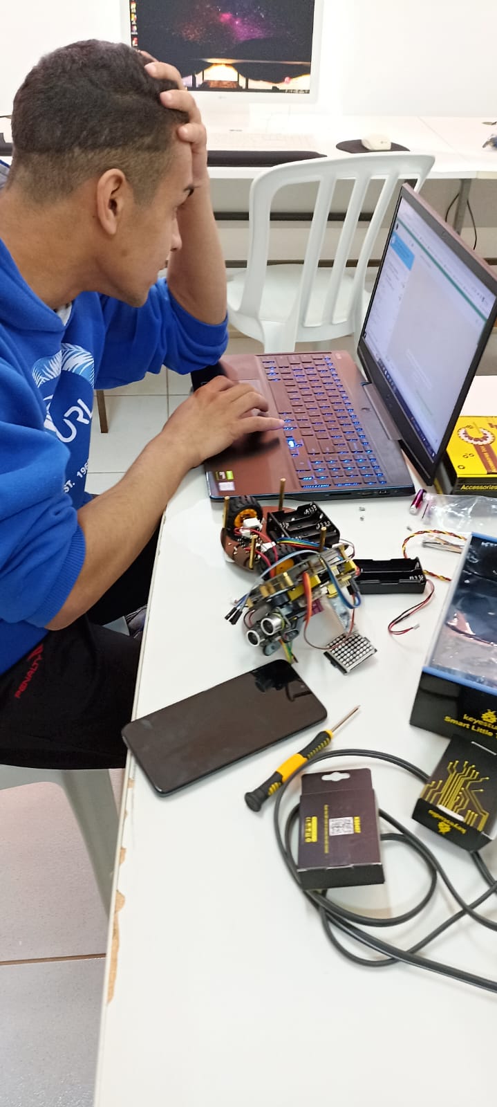 Aluna separando peças de robótica
