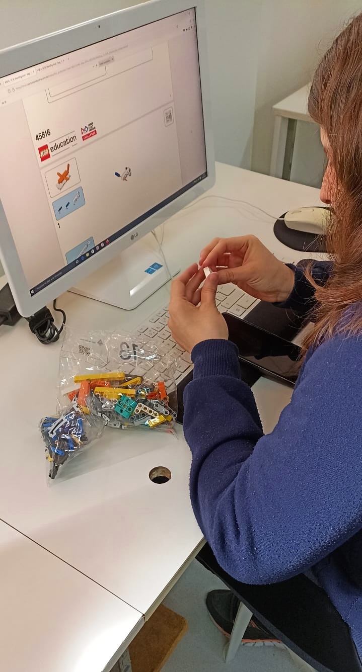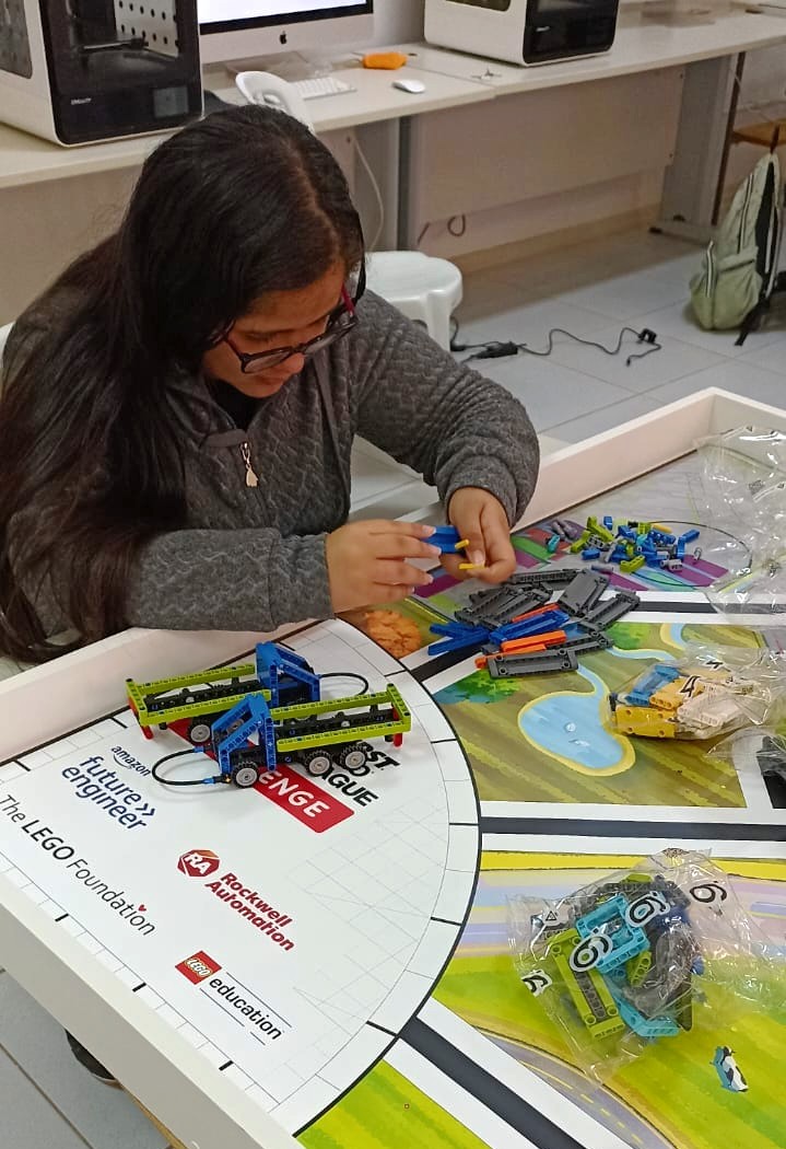 Aluna manuseando peças de robótica