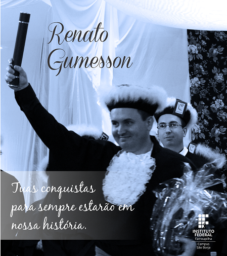 Renato graduou-se a pouco menos de um mês, colando grau no dia 17 de março. Aluno reconhecido pelos demais colegas como um líder do curso, Renato deixa uma trajetória acadêmica notável. Além de fazer parte da primeira turma do curso de Sistemas de Informação, foi presidente da primeira empresa júnior do Instituto Federal Farroupilha, a "Missões Júnior", vinculada ao Curso Superior de Sistemas de Informação do IFFar-Campus São Borja.