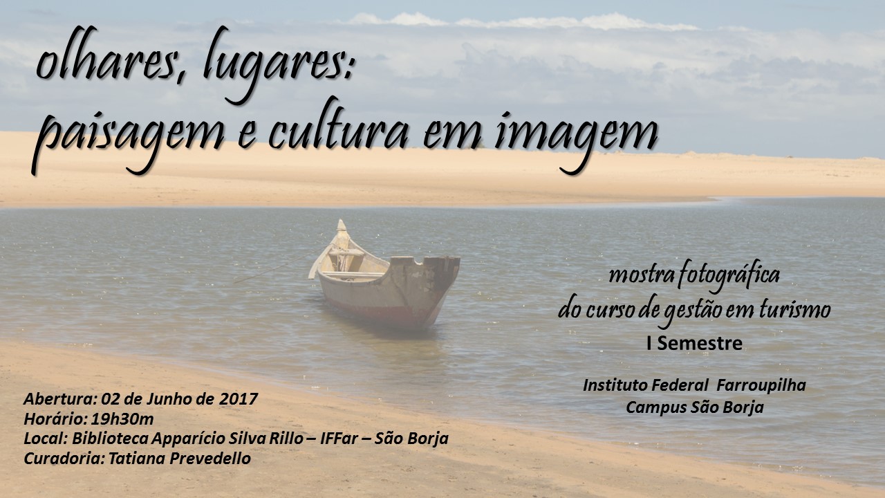 Entre os dias 02 a 19 de junho, o curso de Tecnologia em Gestão de Turismo do IFFar-Campus São Borja promove a Mostra Fotográfica "Olhares, lugares: paisagem e cultura em imagem". A mostra busca explorar por meio das imagens fotográficas, experiências de viagens que relatam a interação do indivíduo com a natureza, estendendo-se para suas dimensões sócio-históricas, patrimoniais, políticas e culturais.