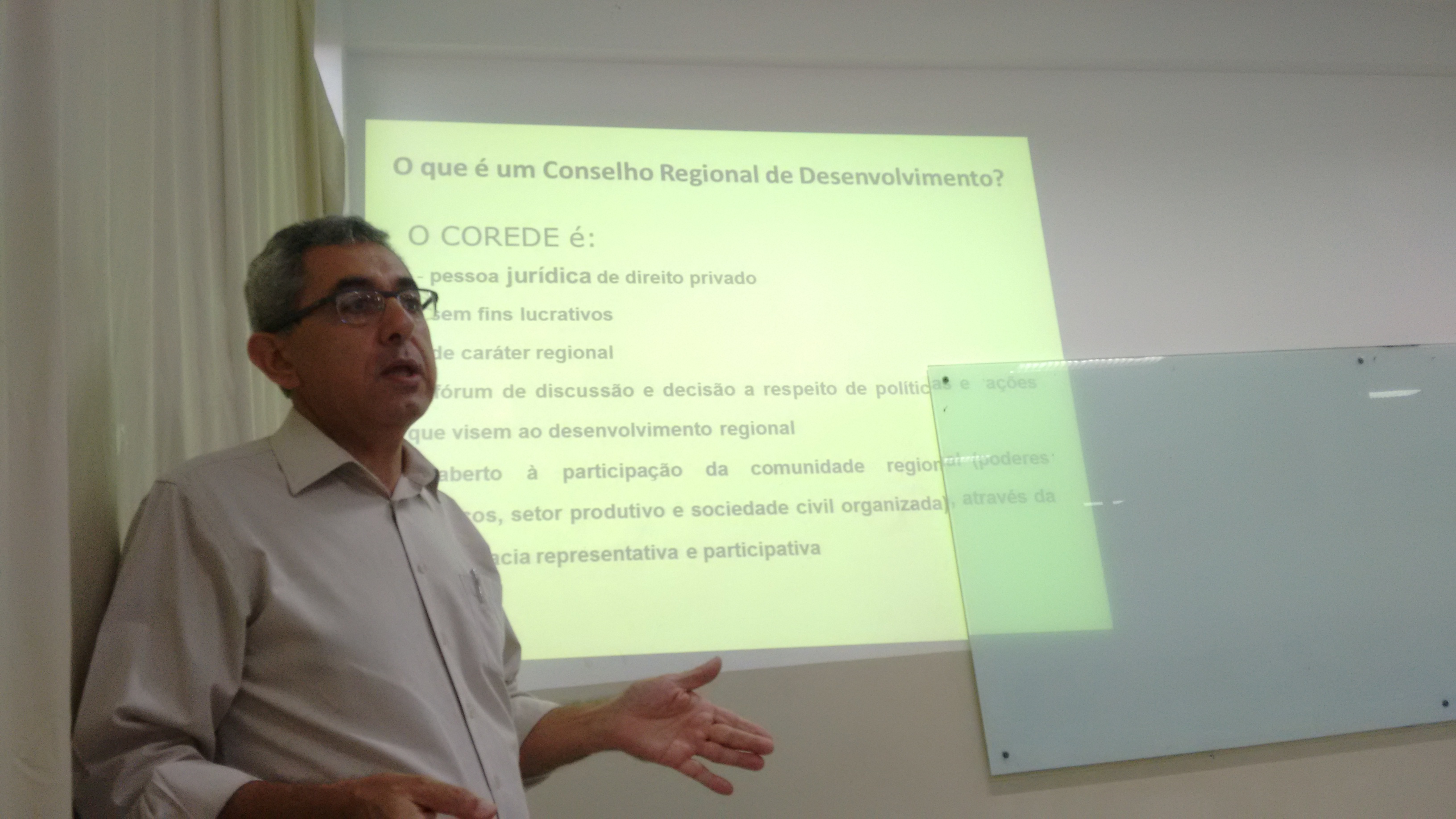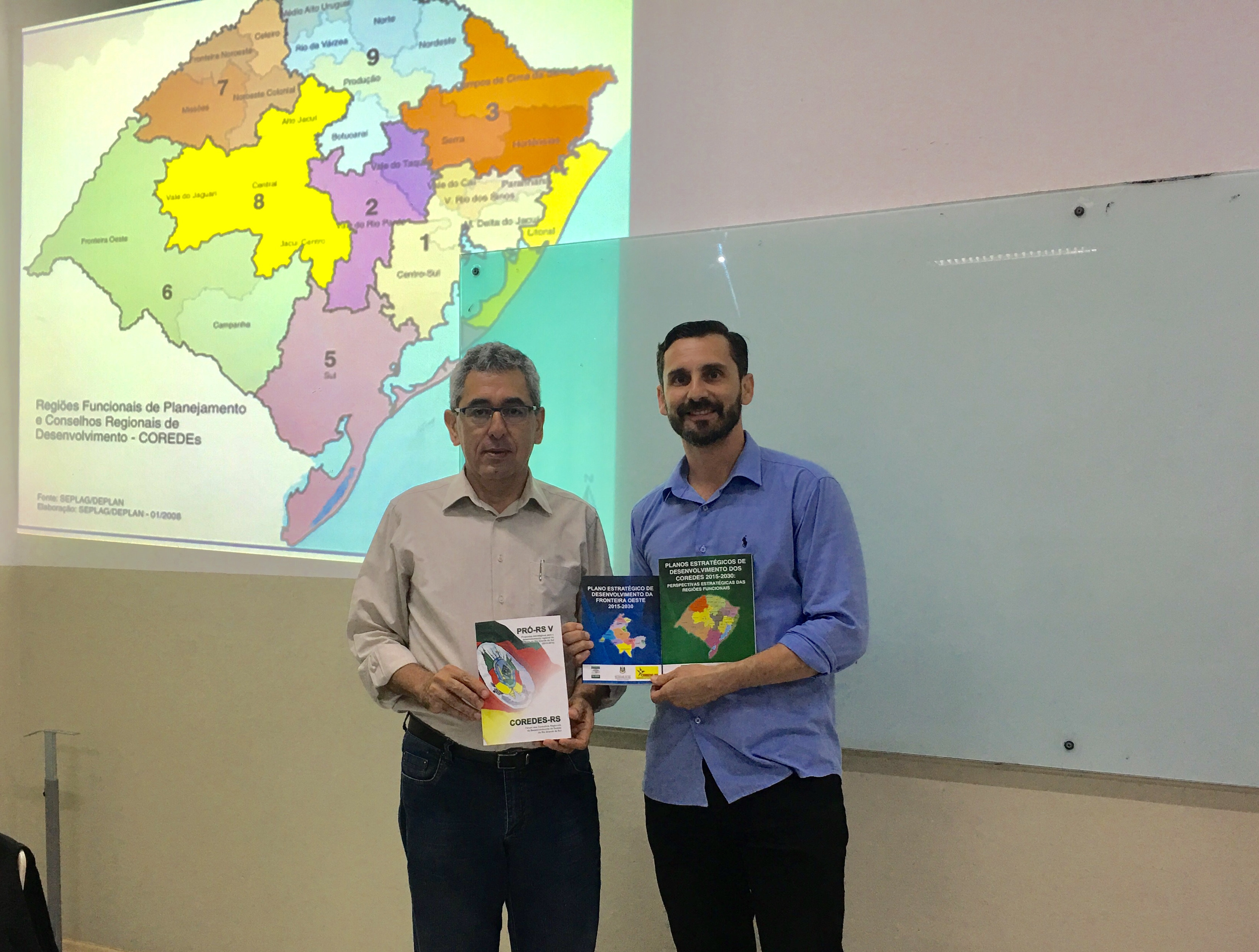 Na ocasião, Hugo Chimenes falou sobre a história e o surgimento dos Coredes, além da possibilidade e importância da participação dos acadêmicos perante o Conselho. Também apresentou o Plano Estratégico do Corede-Fronteira Oeste para o período de 2015-2030.