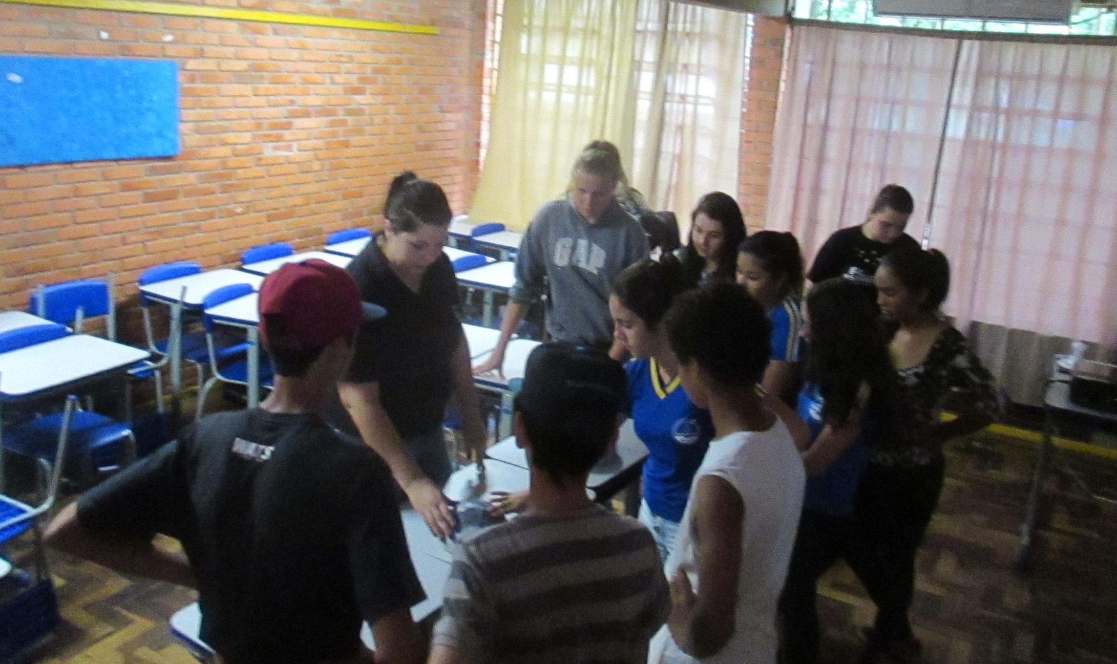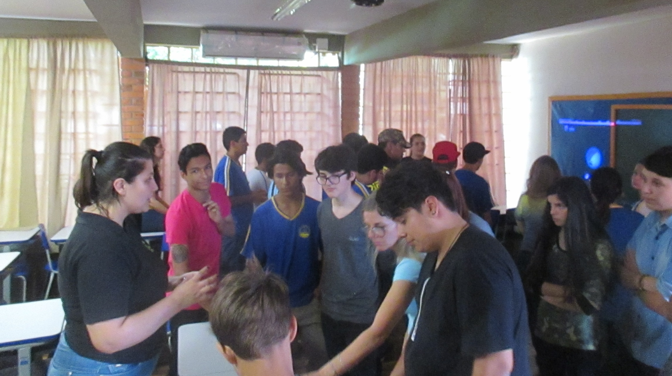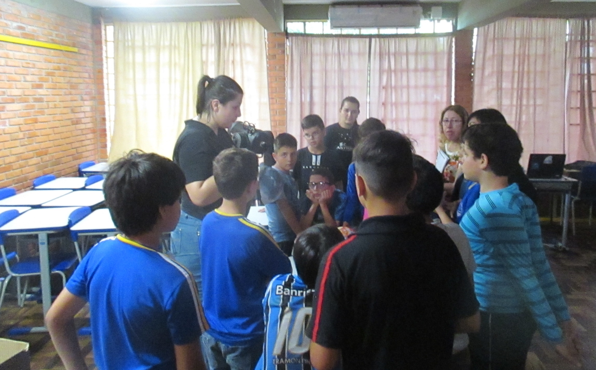 Participaram da atividade na escola Tricentenário as bolsitas do projeto Bruna Cerentini, Suen Correa e o professor Mairon Machado.