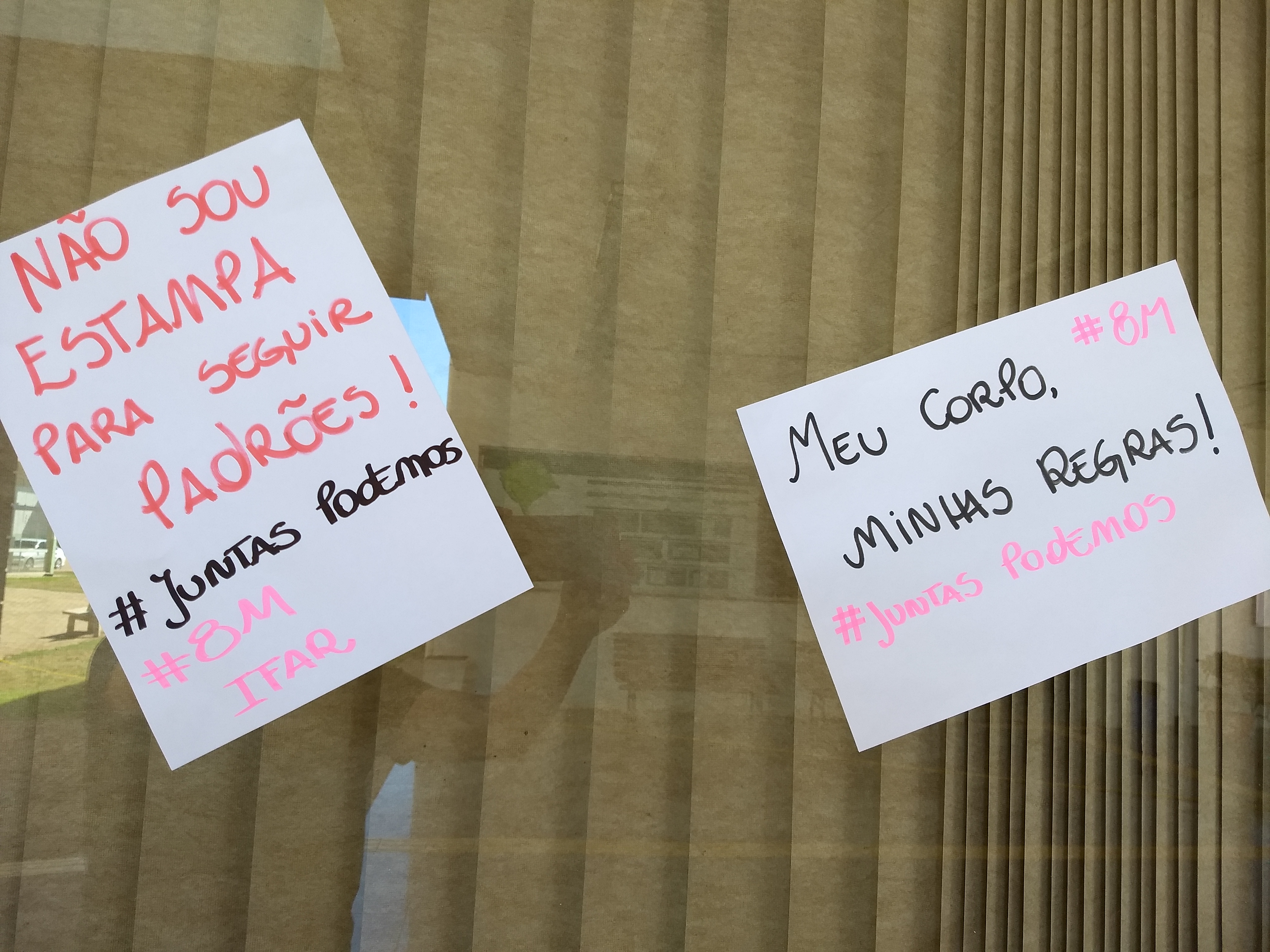 Assim o Nugedis organizou a campanha #SororidadenoIFFar #JuntasPodemos com algumas atividades no dia de hoje, entre elas, a distribuição de cartazes no campus com frases sobre o tema e uma marcha com saída às 17 horas do IFFar rumo à Praça Central XV de Novembro, onde haverá uma aula pública sobre a Sororidade e o Feminismo.