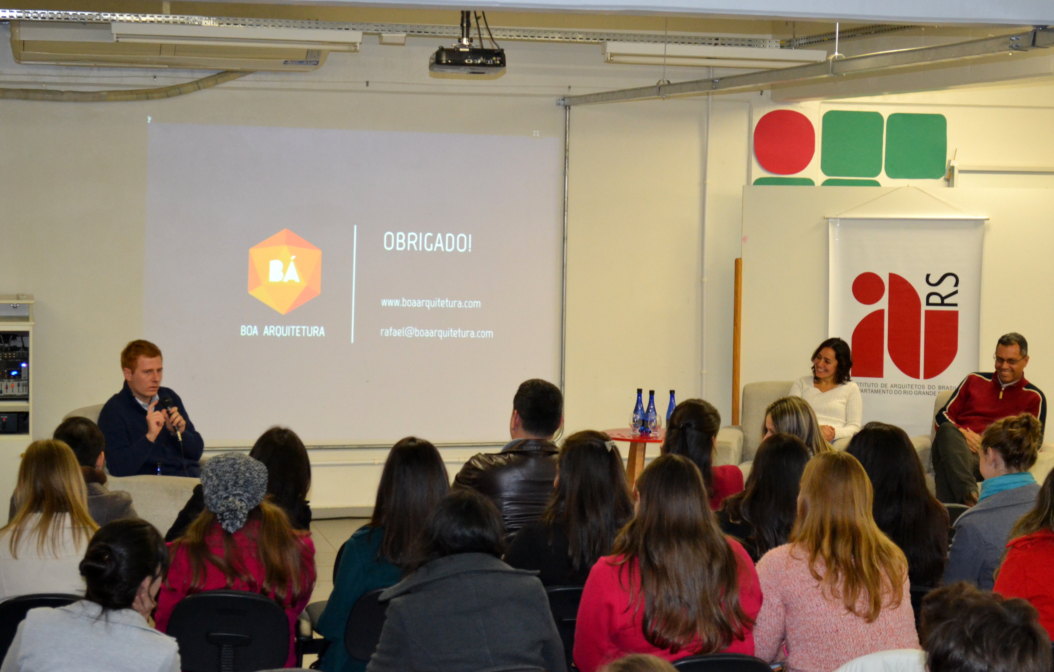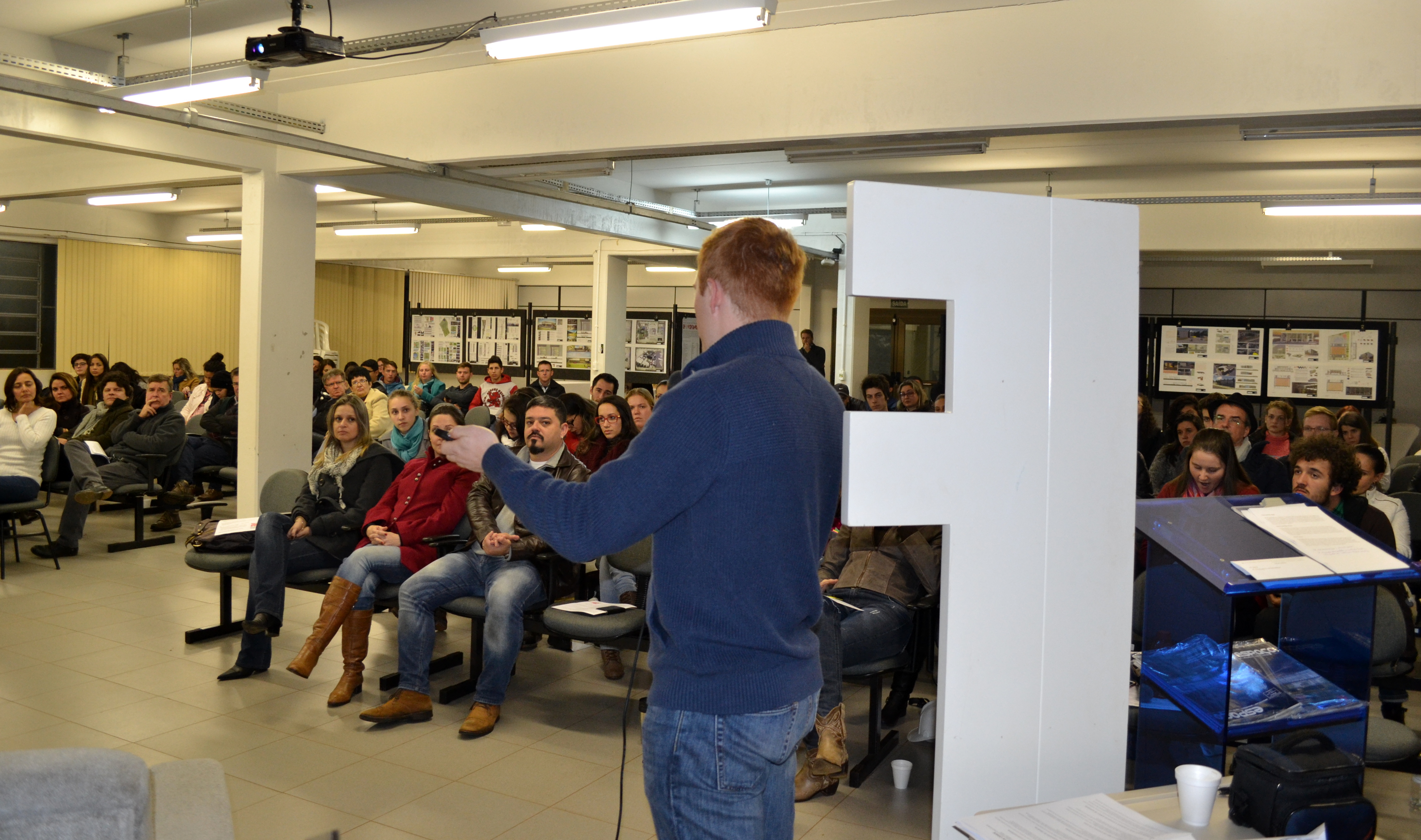 O arquiteto Rafael Lorentz, da Bá – Boa Arquitetura, foi o palestrante do evento, discorrendo sobre o tema “A atuação do arquiteto no contexto local: três pontos de vista”. Ele apresentou a produção de seu escritório como demonstração das possibilidades de ação em diferentes cidades e falou da necessidade de envolvimento do arquiteto em toda a cadeia da construção civil. Também comentou sobre a formação acadêmica atual e da importância da formação profissional além da sala de aula.