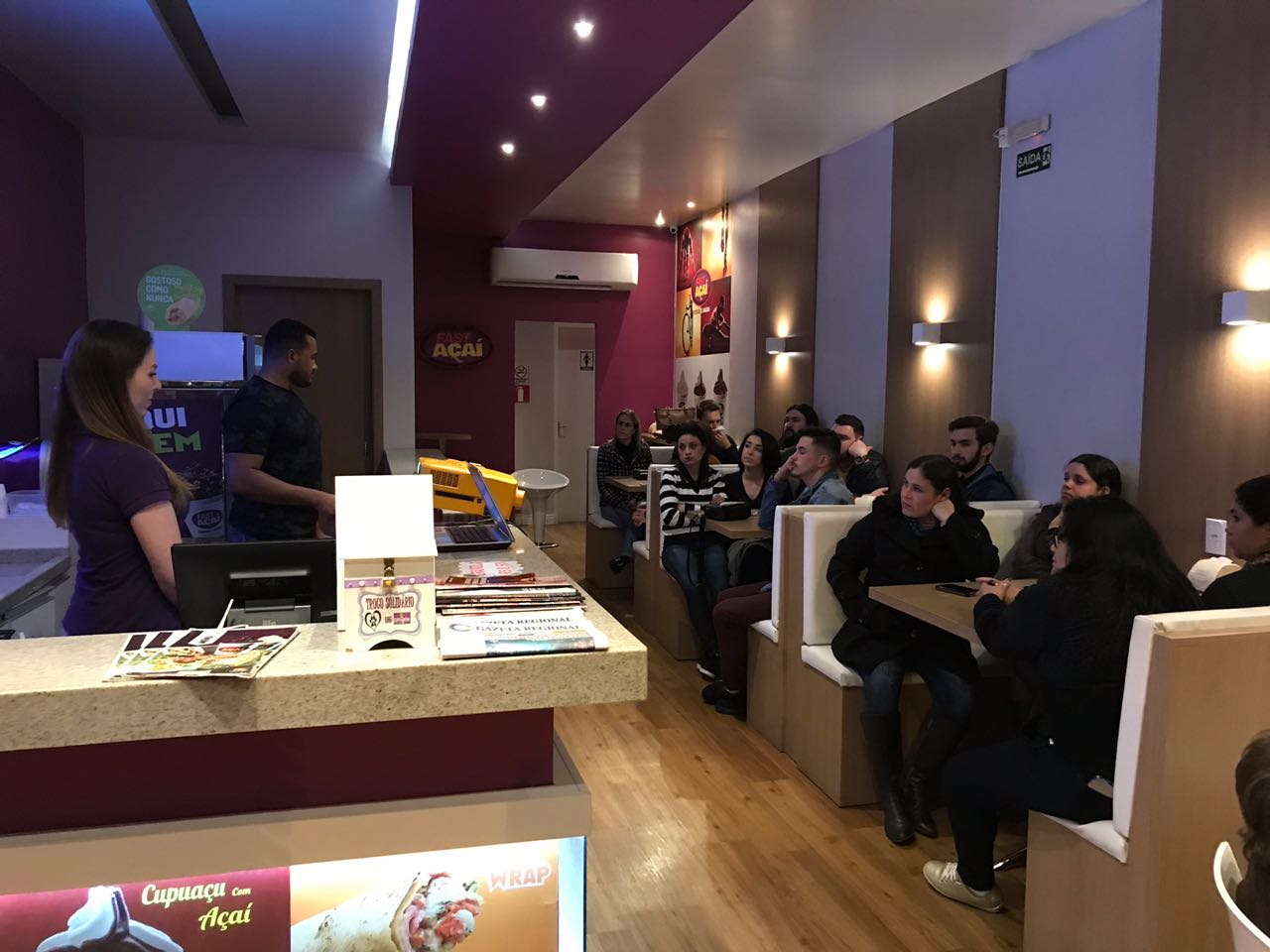 Segundo a professora Ivete Aparecida Patias, que ministra o componente de Administração de Vendas, o objetivo da visita foi aliar a parte teórica das aulas com a parte prática da empresa. Na oportunidade, o aluno Rafael, proprietário da Fast Açaí, e sua esposa Luciana, expuseram toda a trajetória da empresa, que hoje está com três anos de atividade. A empresa é uma franquia e atualmente são os proprietários que administram e trabalham na mesma. Os proprietários contaram como fizeram a escolha da franquia, por meio de pesquisa, alinhando o trabalho ao hobby. Expuseram os desafios de ser empreendedor, pois os produtos que representam é originário de outro estado, com isso envolve questões como tributação diferente, logística, produto inovador para a nossa região, investimento, entre outros. Ao final da visita, os proprietários distribuíram amostras de alguns produtos, dentre eles a granola.