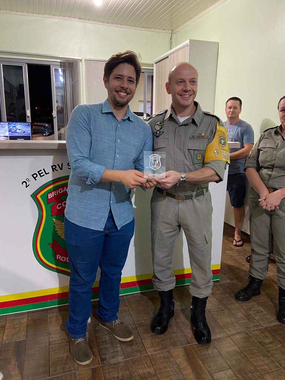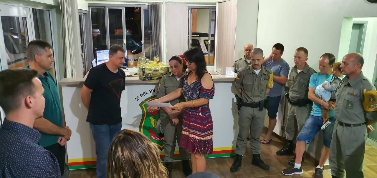 Na ocasião, os representantes do Batalhão Rodoviário receberam o Termo de Doação do projeto. O evento contou com a presença da diretora-geral, Renata Rotta; do coordenador do curso, professor Juliano Moreira Coimbra; dos professores Lucas Tescke e Silvie Jobim; do laboratorista, Pedro Galina e dos alunos do 4° semestre do curso Técnico em Móveis Subsequente. Como mimo, a diretora Renata Rotta recebeu uma réplica da viatura da Polícia Rodoviária com adesivo personalizado ao IFFar - Campus Santa Rosa.