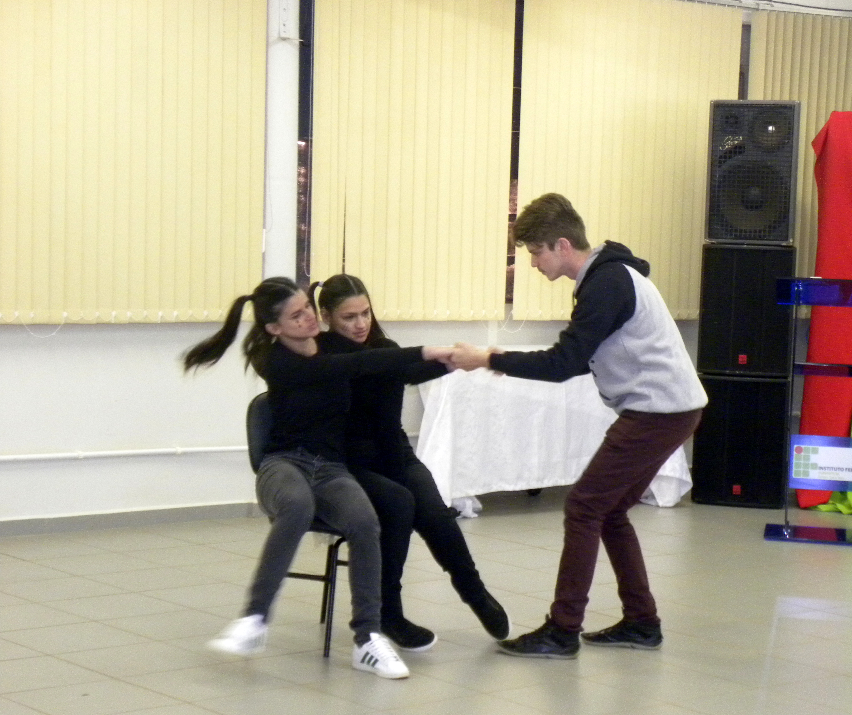O grupo de teatro formado por alunos com deficiência auditiva dos cursos técnicos Integrados do IFFar – Campus Santa Rosa conquistaram a 3° colocação na IV Mostra Cultural do IF Farroupilha, ocorrida no Campus São Borja. O evento foi realizado na quinta-feira (25) e contou com a presença de representantes de todo os campi do Instituto, nas diversas modalidades artísticas.