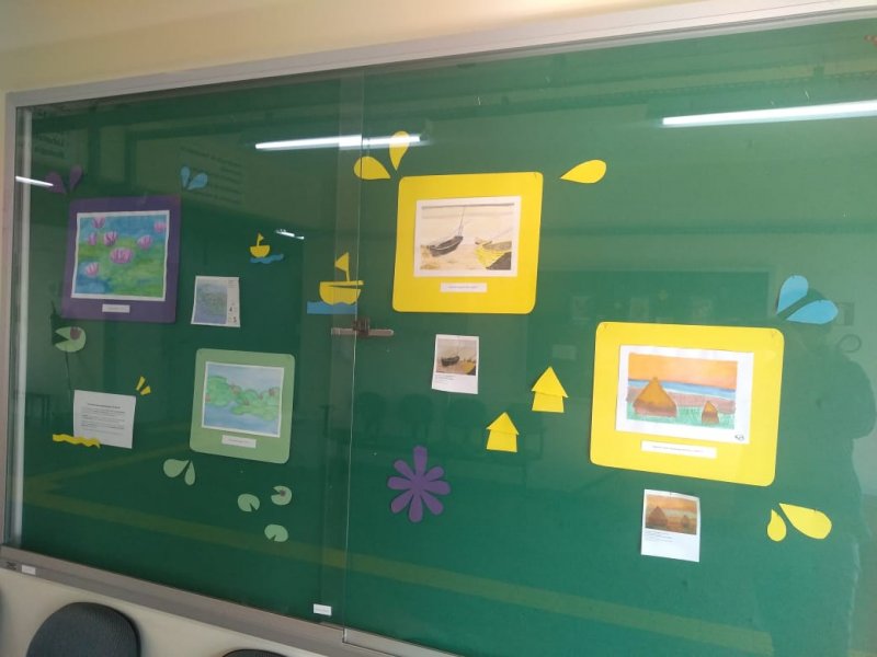 As releituras foram elaboradas com inspiração nas obras do artista francês Claude Monet, um dos primeiros marcos do estilo impressionista. Os trabalhos foram expostos nos murais do Prédio Pedagógico 1, com a colaboração do bolsista do projeto de extensão Espaço Cultural 2022, Vitor Zottis. "A releitura é uma forma de fazer o aluno criar uma nova obra, baseada na anterior, com um novo olhar, transformando a obra e expressando suas próprias perspectivas em sua produção", diz a professora Cornelia Kudiess.